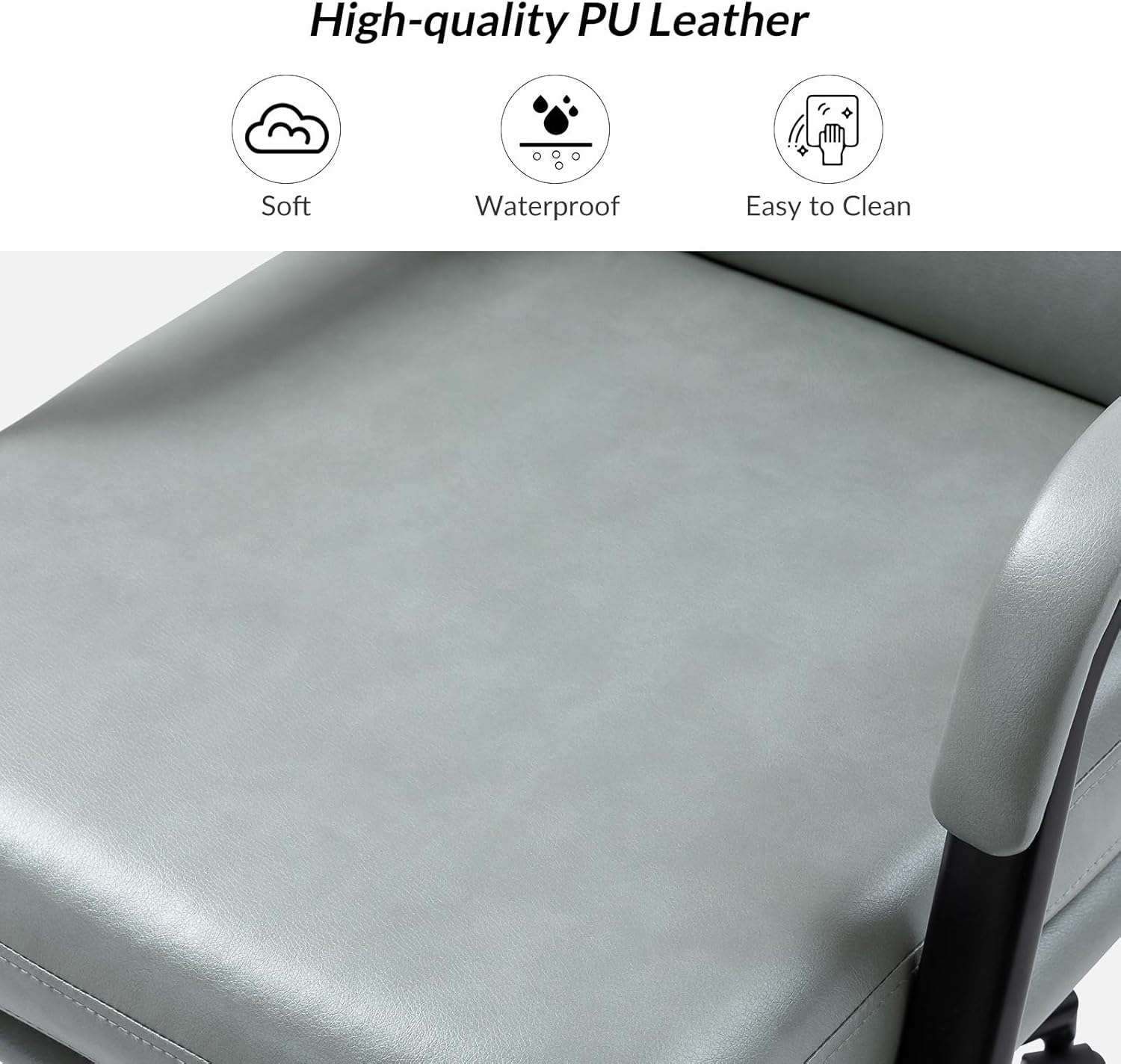HULALA HOME Modern Faux Leather Home Office Chair with Tilt Lock & Metal Base, Desk Chair with Wheels & Padded Cushion, 360° Swivel Wide Seat Computer Task Chair, Sage