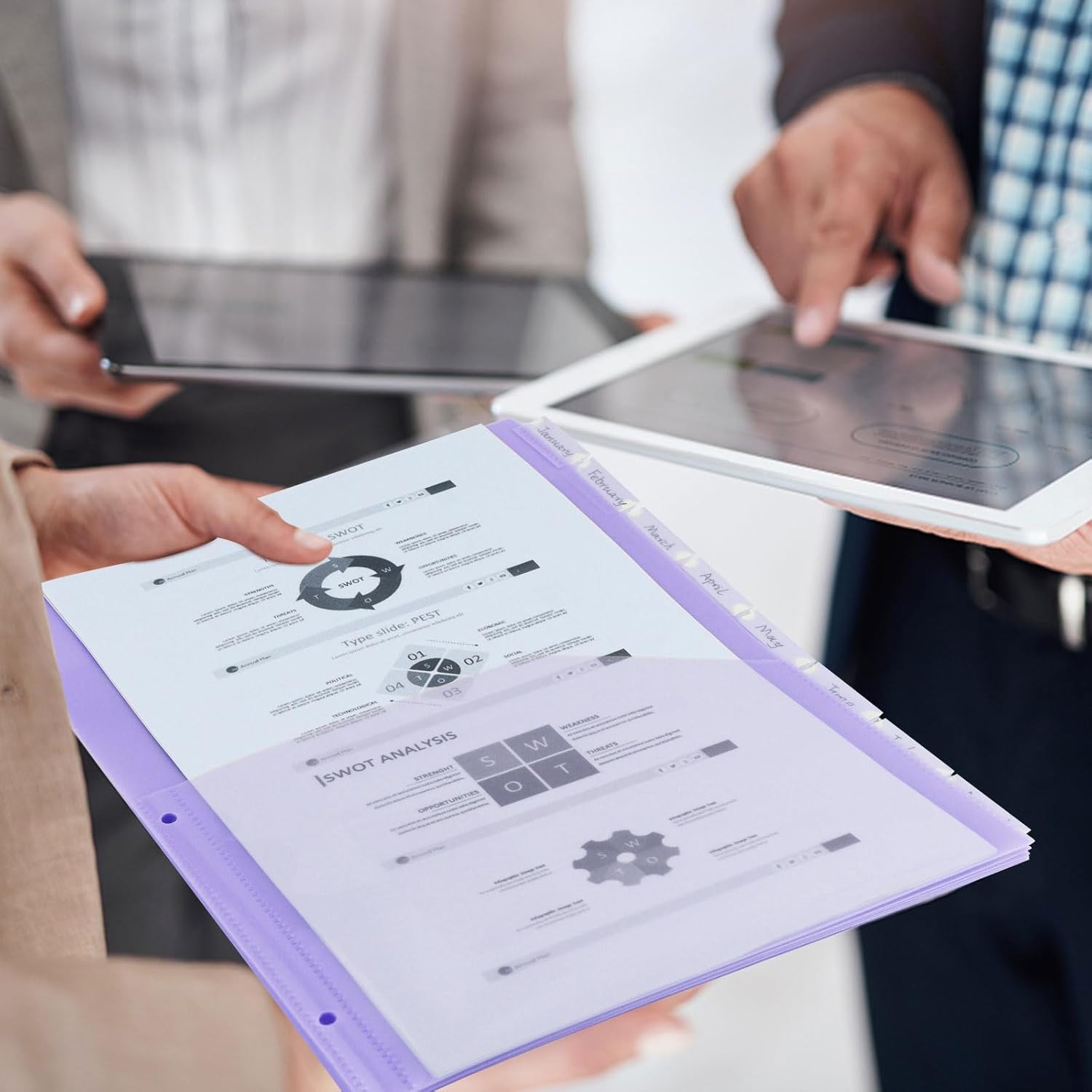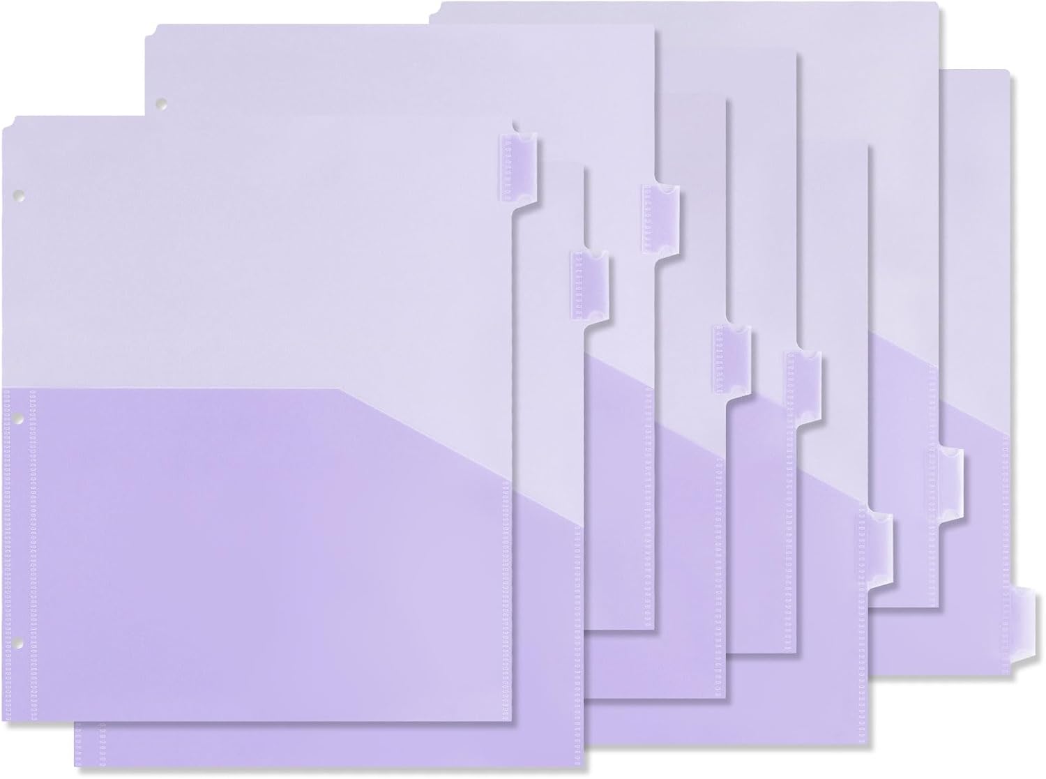- 【1/8-Cut Tabs for Quick Access】Our Plastic Dividers with Translucent Front Pocket feature 1/8-cut tabs that are easy to label with stickers, making it simple to visually differentiate between subjects or topics within a binder.