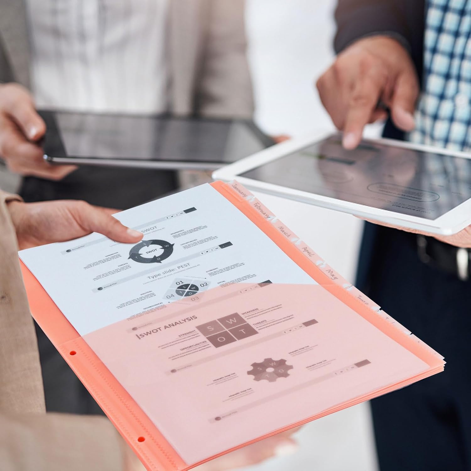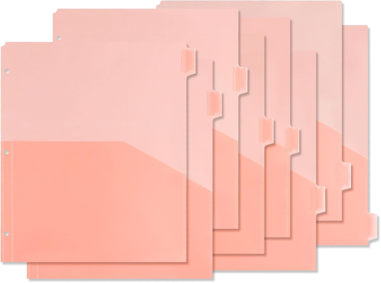- 【1/8-Cut Tabs for Quick Access】Our Plastic Dividers with Translucent Front Pocket feature 1/8-cut tabs that are easy to label with stickers, making it simple to visually differentiate between subjects or topics within a binder.