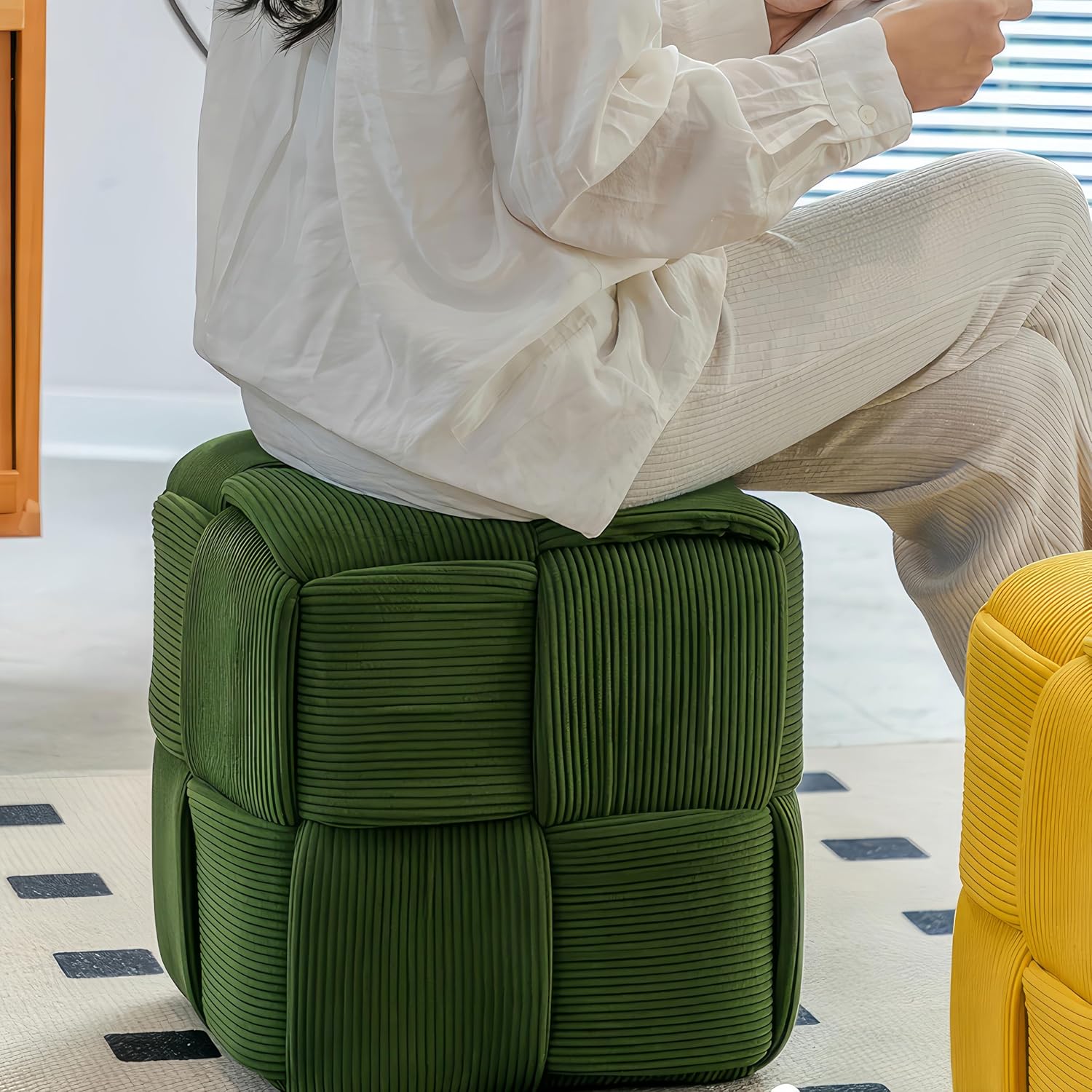Ottoman Foot Rest Soft and Comfortable Ottoman Square Corduroy Woven Design Sofa Stool (Green)
