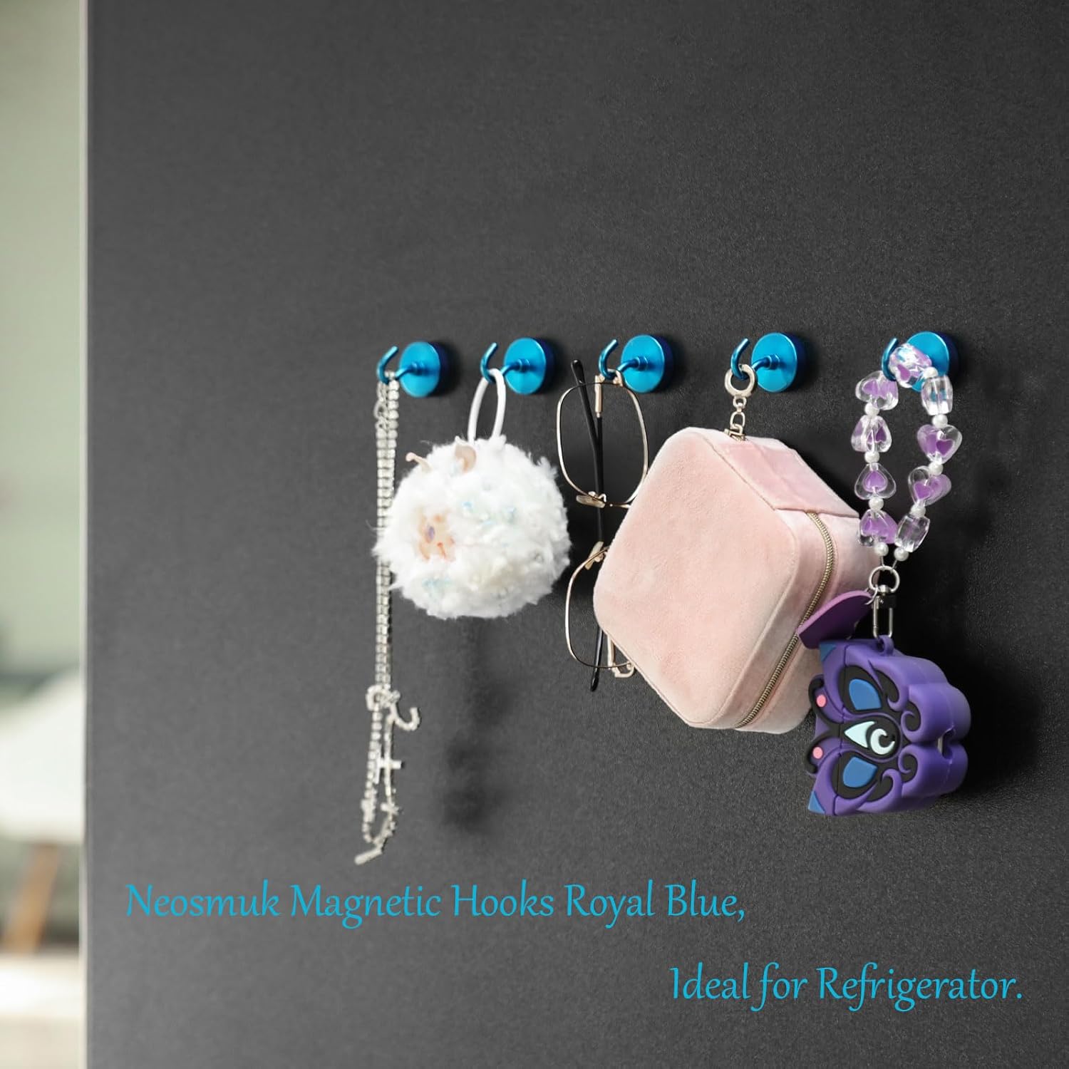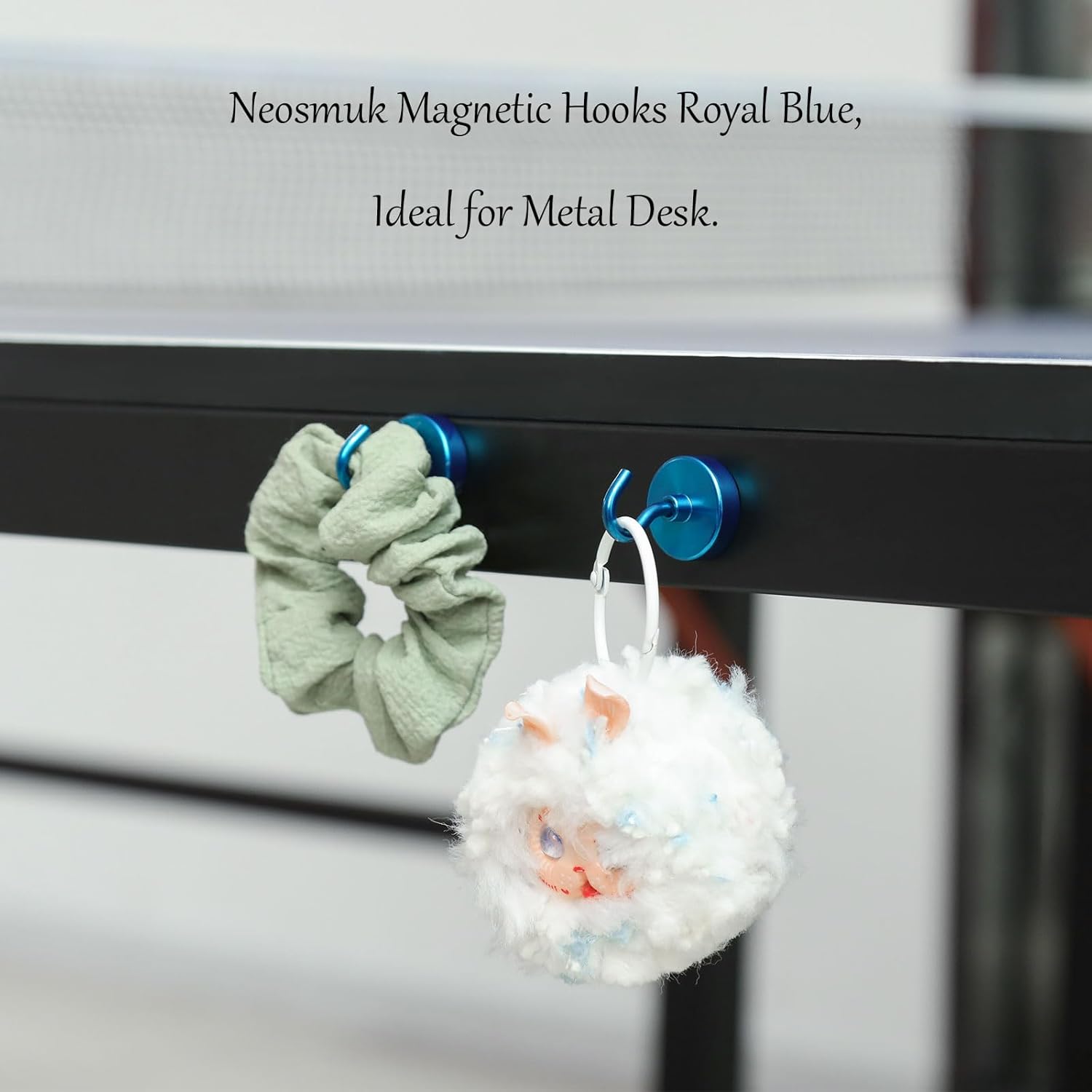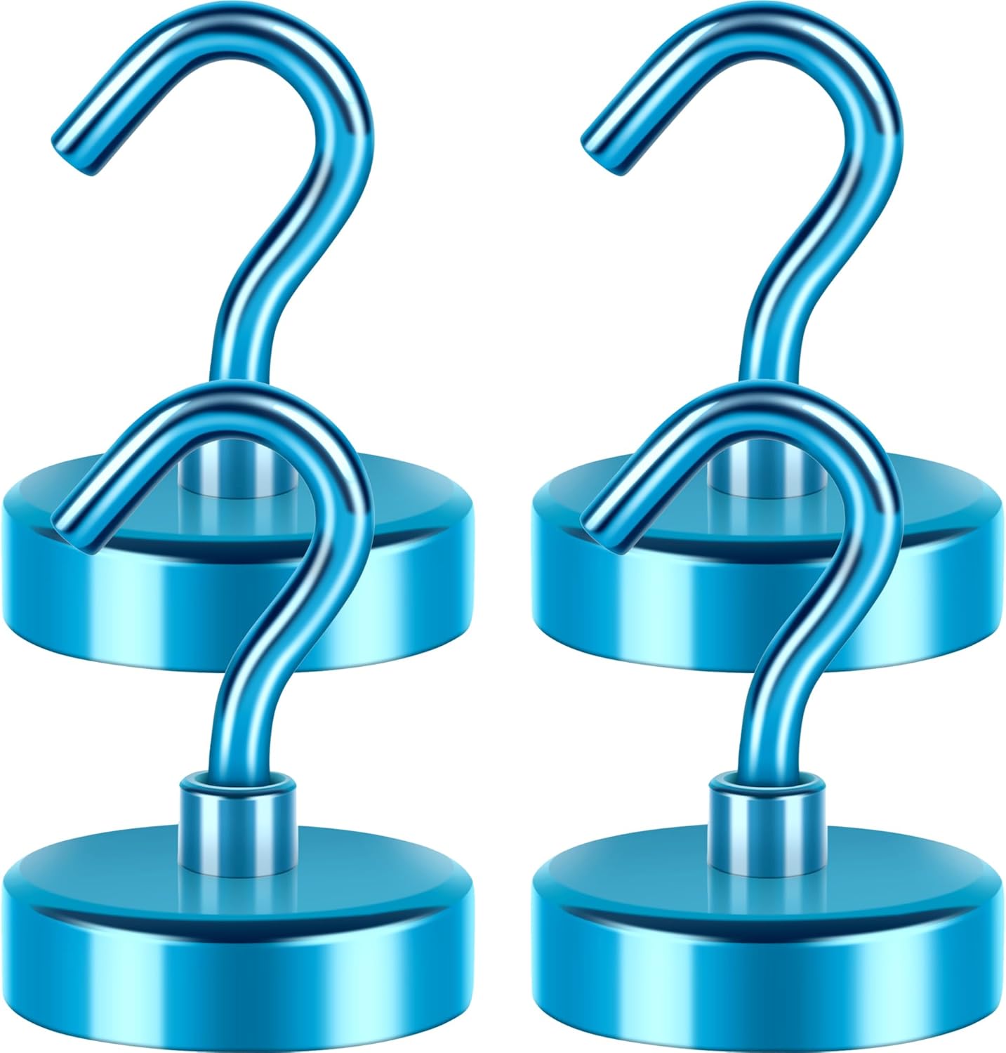 Neosmuk Magnetic Hooks Heavy Duty,Strong Magnet with Hook for Fridge, Super Neodymium Extra Strength Industrial Hooks for Hanging, Magnetic Hanger for Toolbox, Cruise, Grill(RoyalBlue,4 Pack)