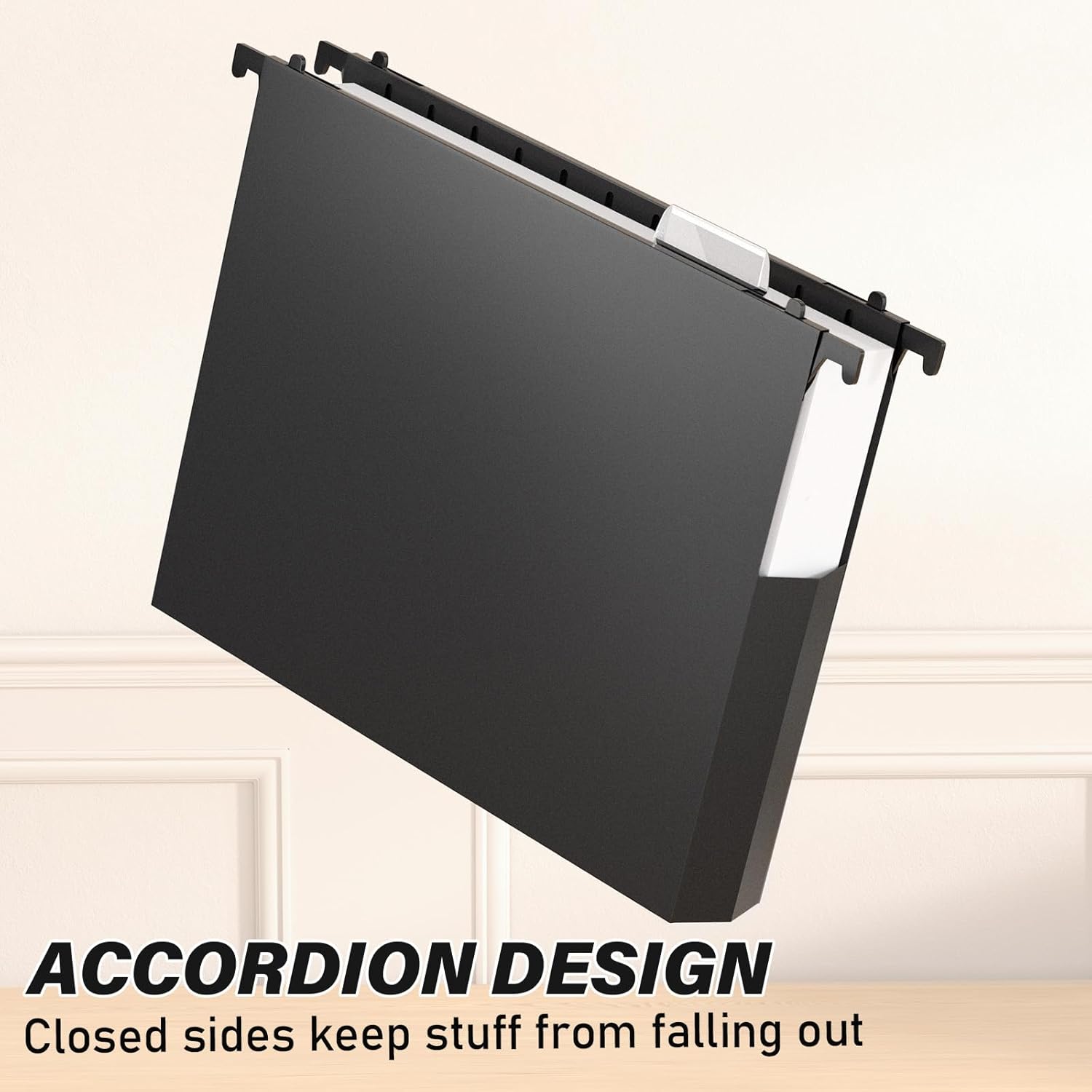 - 【ACCORDIAN POCKET FILE FOLDERS】: The accordion style side can prevent files and paper from falling off. The 2-inch black insert pad provides strong support from the bottom to prevent files from sinking or expanding. The retractable slide rail can easily slide in the drawer without deformation