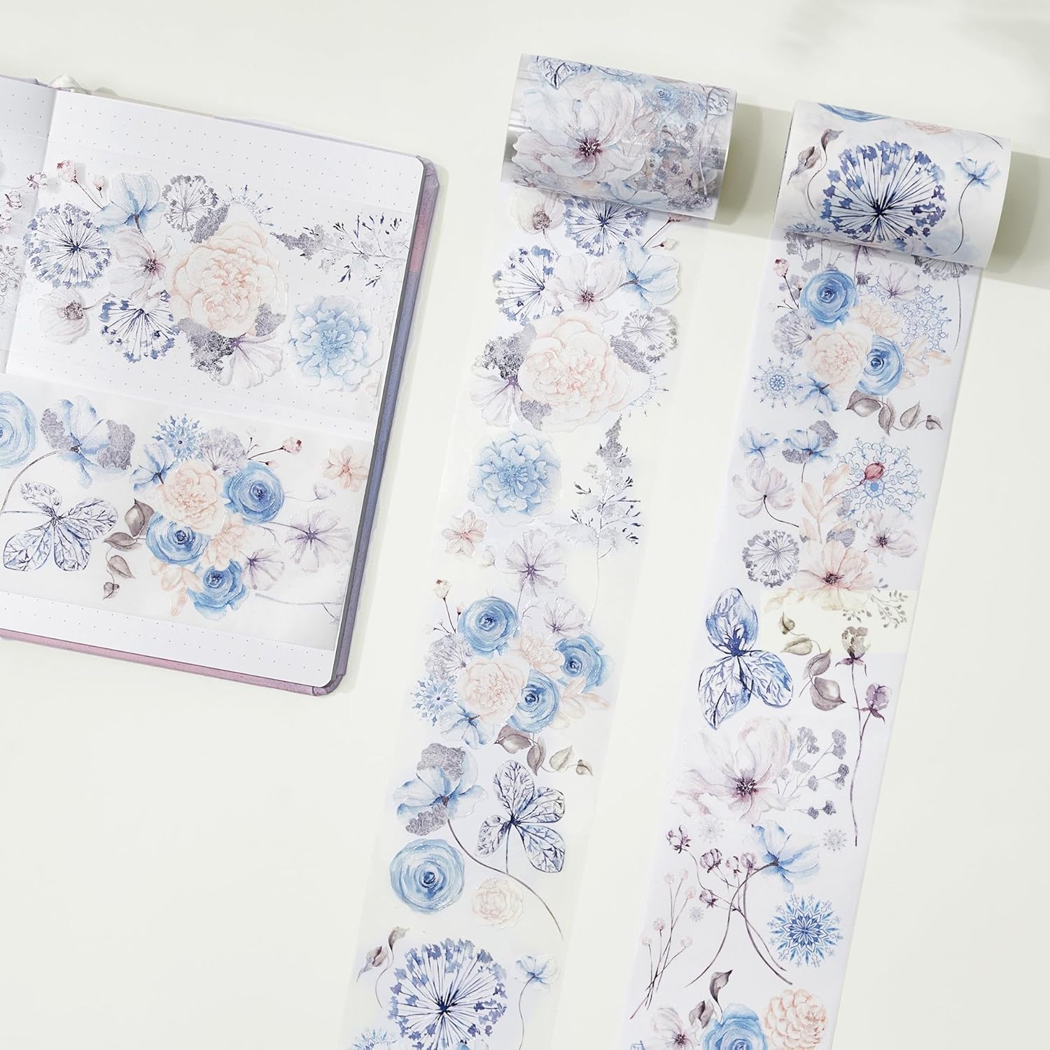 WT Frozen Wide Washi Tape, Single Roll, Original Designs, Pastel Vintage Floral Decorative Tape, Adhesive Paper Tape for Junk Journals, Scrapbooks, Bujo, Planners, DIY Crafts, Gift Supplies