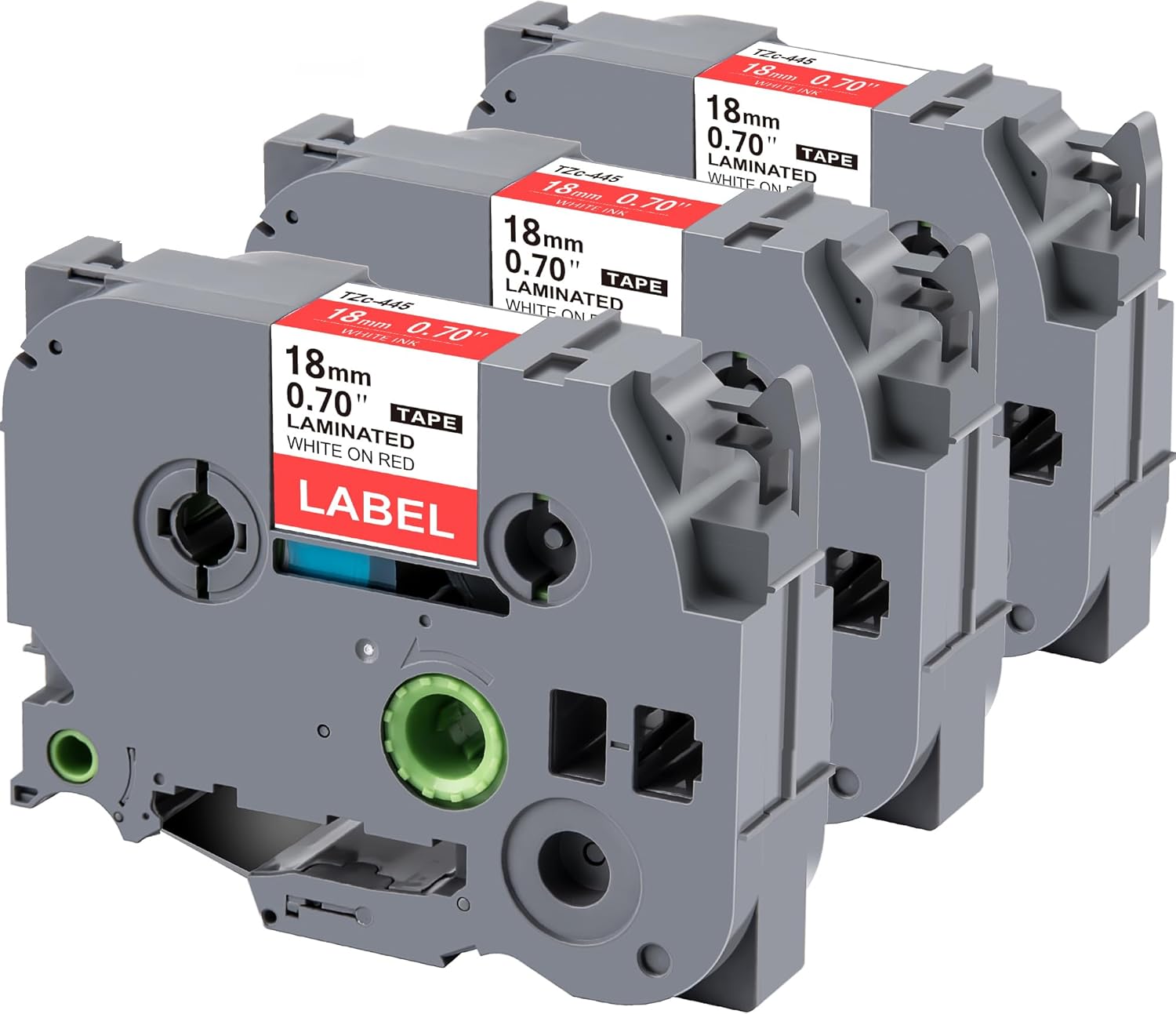 Weemay 3 Pack TZe445 18mm White on Red Laminated Label Tape Compatible with Brother Label Maker Tape TZe-445 TZe 445 TZ-445 TZ445 for PT-D400AD PT-D610BT PT-D600 PT-D410 Printer, 0.7" x 26.2'
