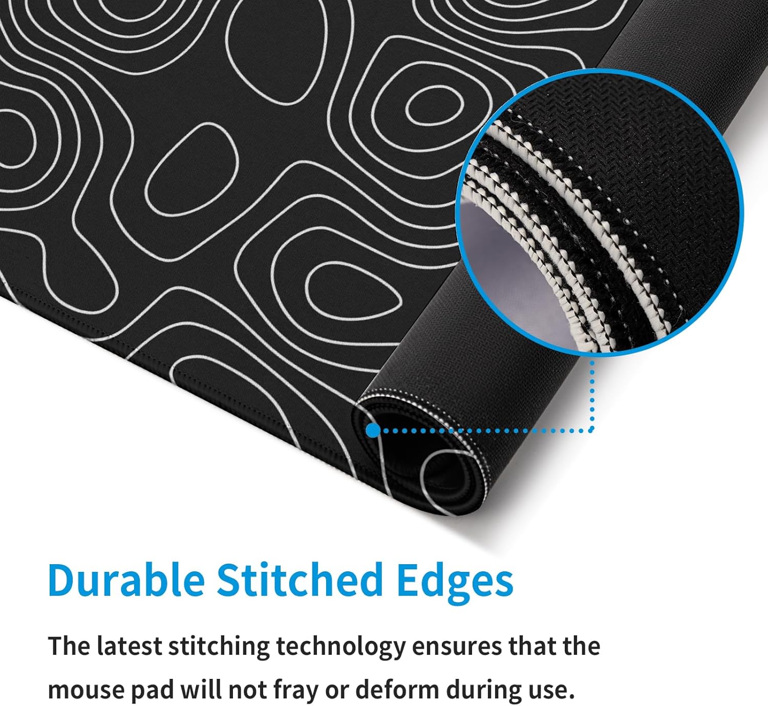 Black Topography Contour Gaming Mouse Pad Large Anime Topographic Map Mousepad Extended Mouse Pad Gaming Big Desk Pad Keyboard Pad with Stitched Edge Non-Slip Rubber Base