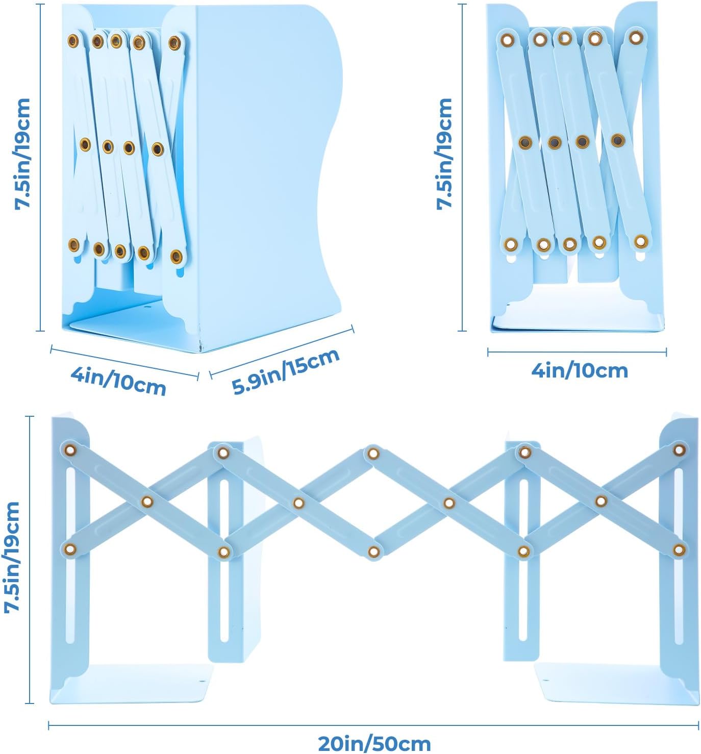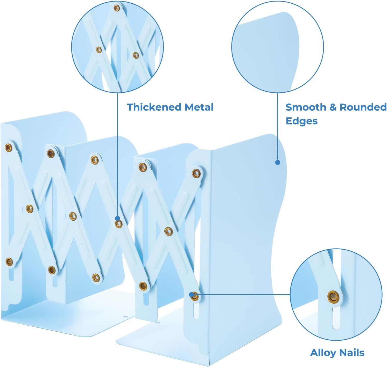M&G Adjustable Bookends Book Ends for Shelves, Metal Bookend for Heavy Books, Desk Magazine File Organizer Holder Extends up to 20in, Book Stopper for Home, Office, Classroom (Blue)