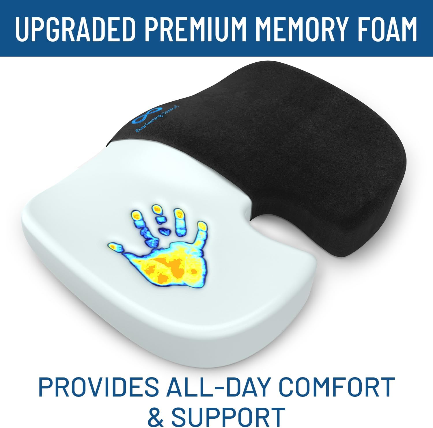 Everlasting Comfort Doctor Recommended Memory Foam Seat Cushion for Office Chairs & Car Seat - Ergonomic Office Desk Accessories for Tailbone Pain Relief, Sciatica & Back Support