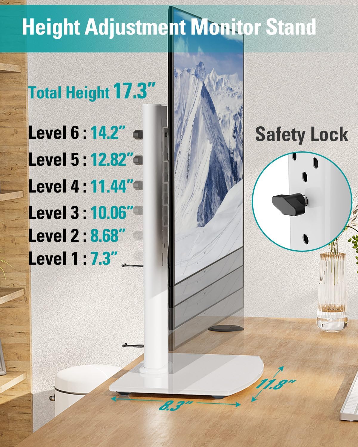 - Comfortable workspace -Say goodbye to messy desktops! This single monitor stand comes with cable management to keep cords clean and organized. It also allows you to move your monitor away from your desktop, freeing up valuable space for other items and making your desk neater and visually more comfortable. And with foot pads to avoid skidding while protecting the desk from scratches.