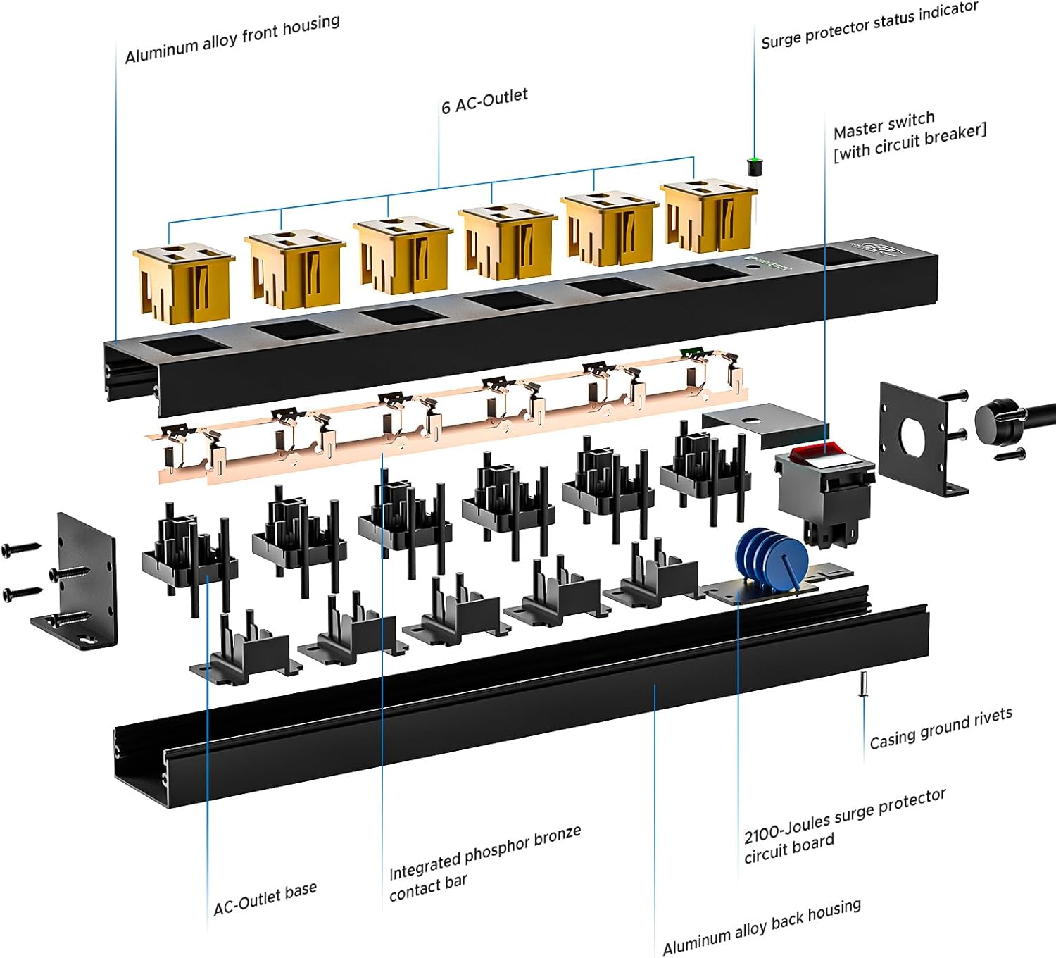 - Special Feature : Mountable& Metal Housing, On And Off Switch, Surge Protection 2100J