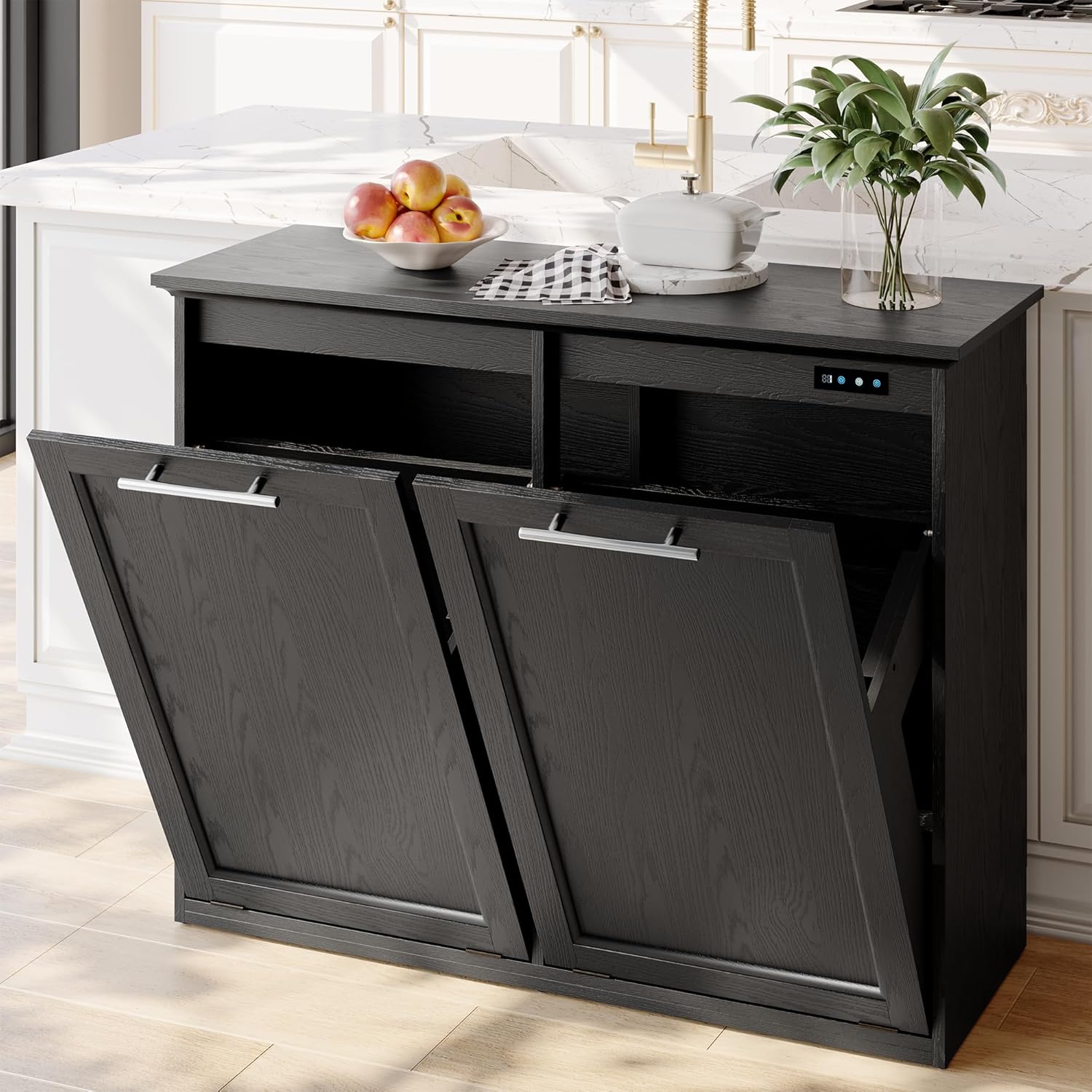 - 【Modern Style Trash Cabinet】Modern style design of free-standing hidden cabinet, can be used in a variety of scenarios, kitchen, dining room, laundry room, living room, etc. (This product should not be placed in a humid environment).