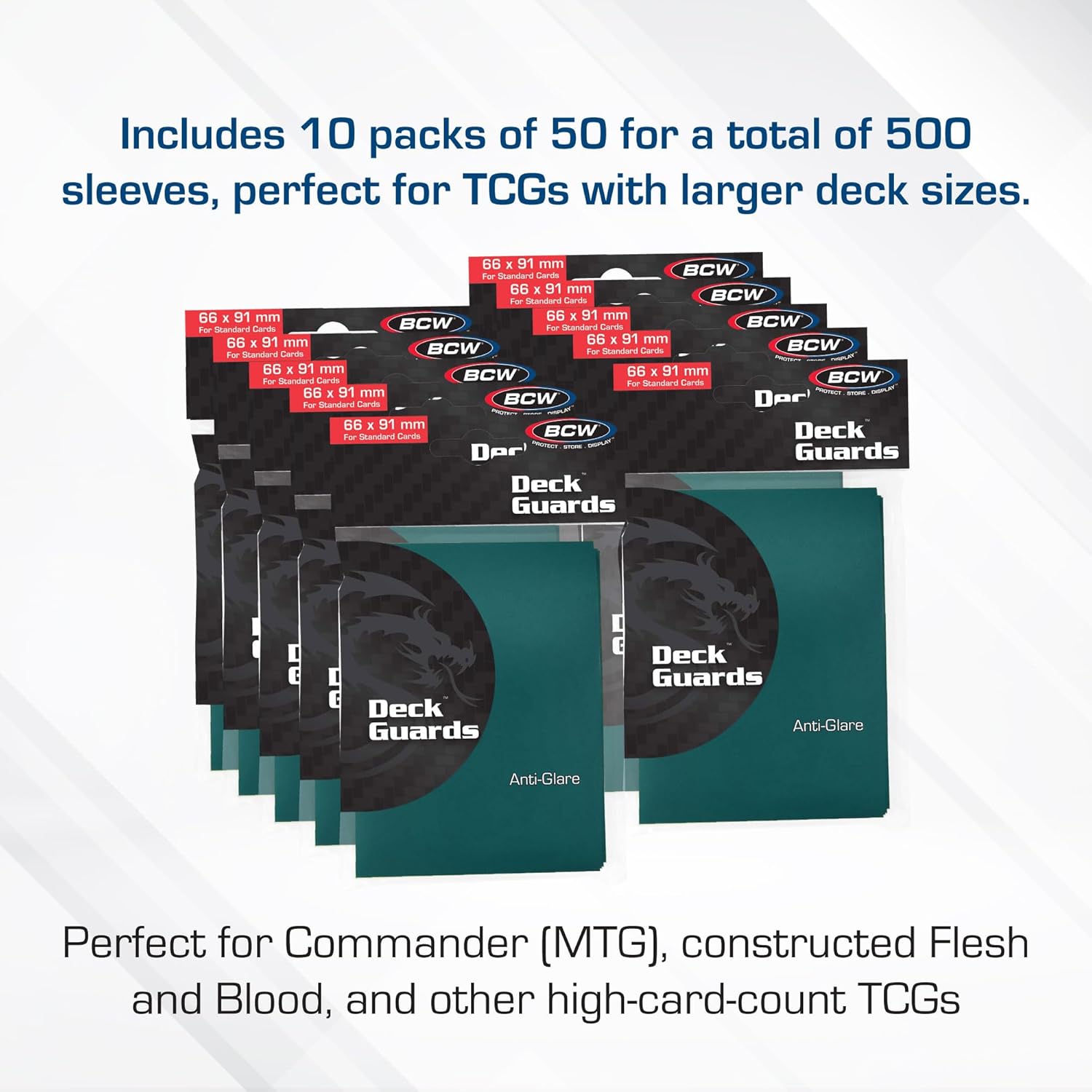 BCW Deck Guard - Double Matte Card Sleeves | 500 Count Box (10 Packs of 50 Sleeves) |Acid-Free, No PVC | Fits 2.5" x 3.5" Game | Archival Safe for Protection (Teal)