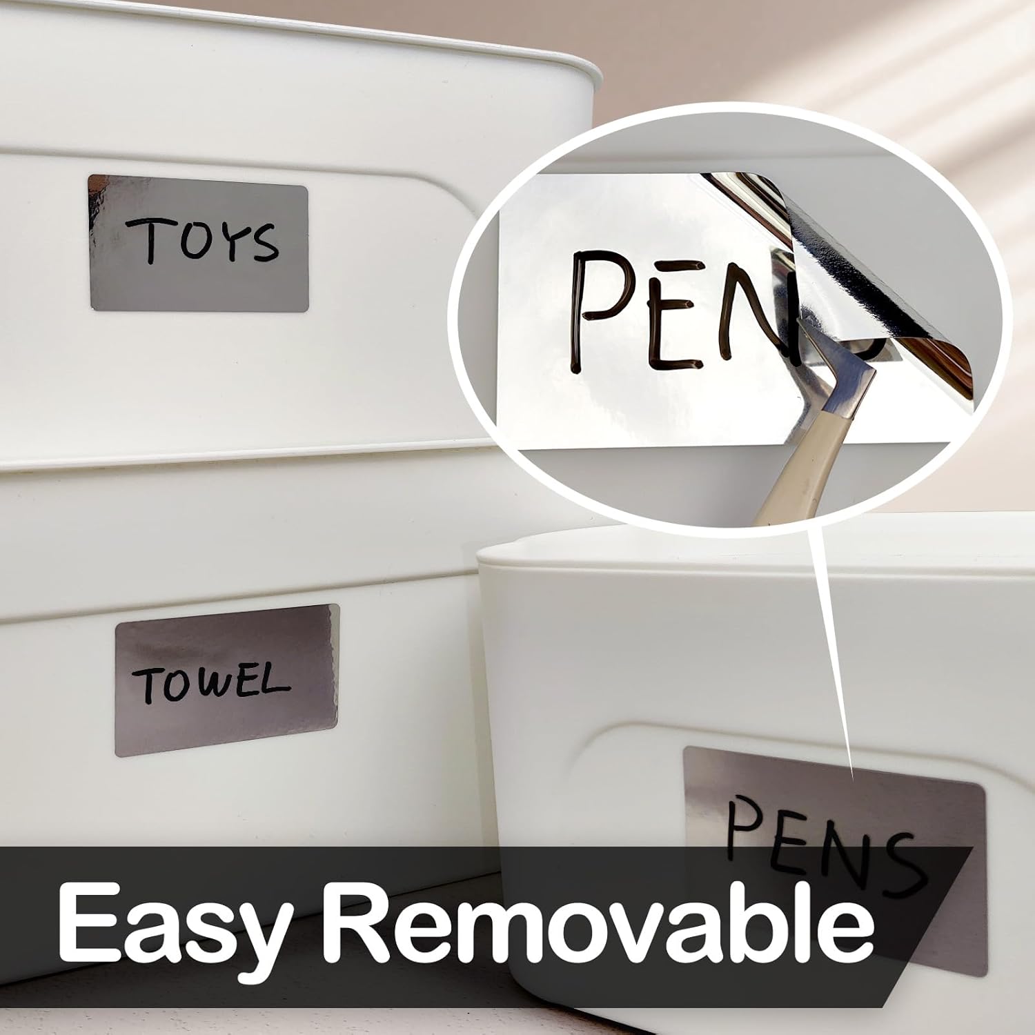 170Pcs Brightsilver Removable Labels for Jars,for Storage Bins,for Food Containers with 2 Liquid Chalk Marker(Brightsilver)