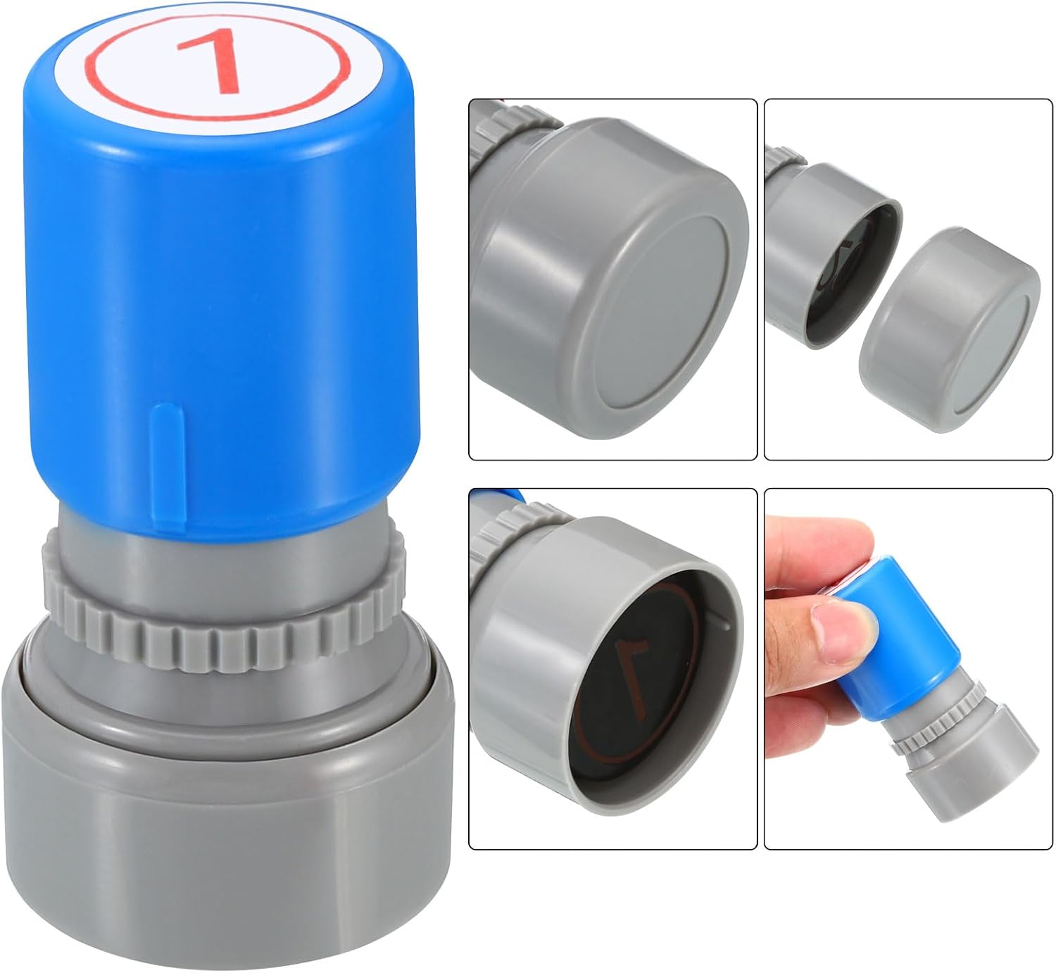- Ink Color: Red; Shell Color: Blue; Pattern: Digital 1; Material: Plastic; Character Size: 20mm / 0.8 inch; Overall Size: 34 x 63mm / 1.3 x 2.5 inch(D*H); Packing List: 1 x Number Learning Stamp, 1 x Ink