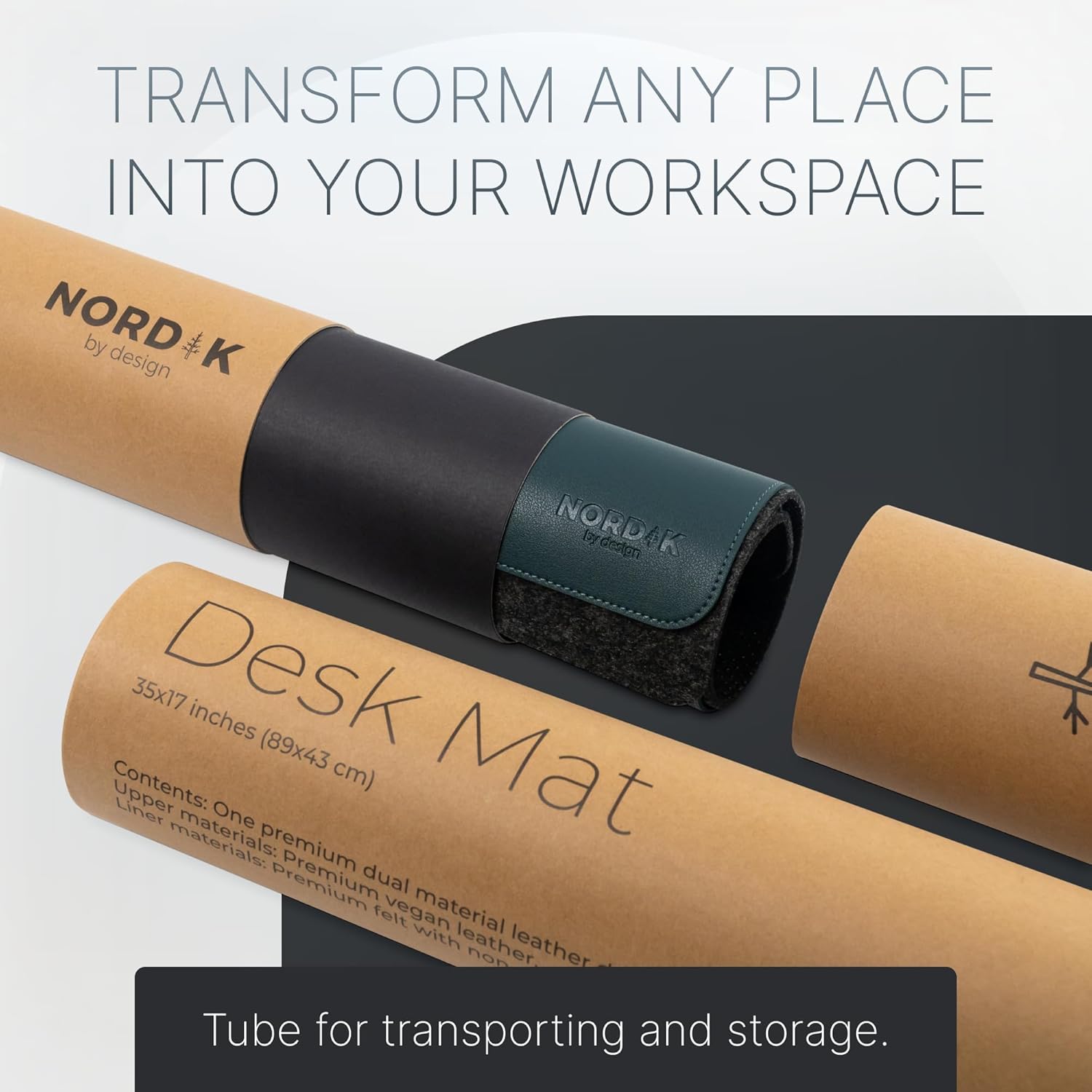 Nordik Felt and Leather Desk Mat Non-Slip - Green - 35 X 17 Inch - Dual Layer - Felt and Vegan Leather Desk Pad - Document Organizers - Blotter and Desktop Mat - Protector Laptop Matt for Desktop