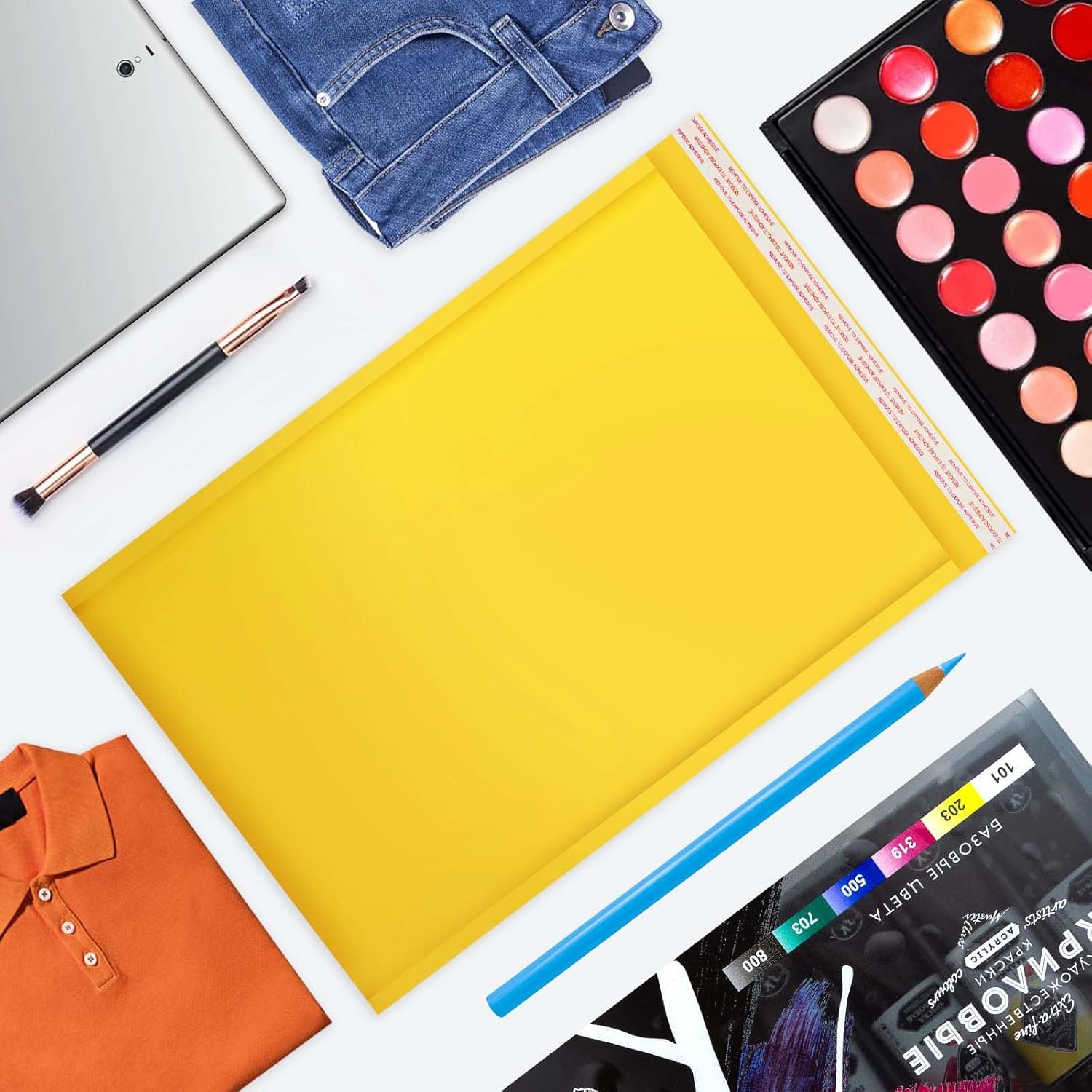 packbabol Kraft bubble mailers 10.5x15 Inch 50 Pack,Self-Sealing Paper Envelopes for Packaging,Strong Adhesion Envelope Mailers, Waterproof Cushioned Padded Shipping Bags Yellow #5