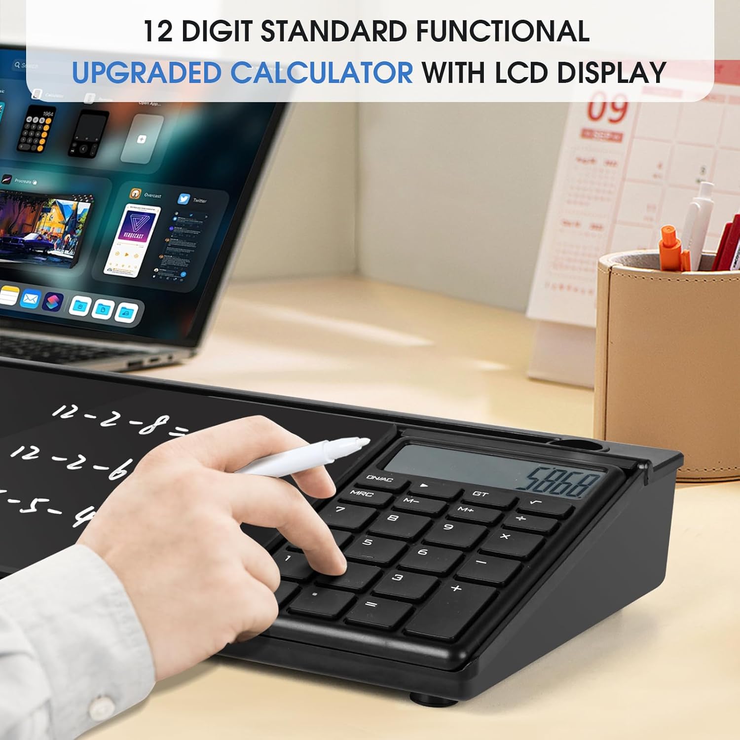 - Removable Calculator: This desk glass white board with removable calculator is an excellent creativity booster for your daily office. The upgraded 12 digit standard functional calculator with LCD display is also an ultimate tool for homework