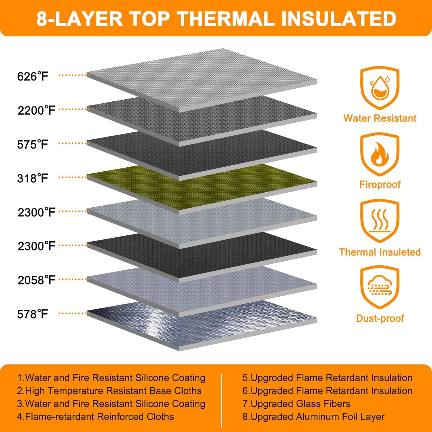 - 5200℉ TOP FIRE PROTECTION::important document organizer is made of silicone fiberglass ,Insulated cotton and Aluminum Foil which withstands high temperature up to 5200℉ .Important document storage adopts a 8-layer function material structure of fire protection and heat insulated to help the heat blocking from your valuables . It will give enough time to save your valuables from fire .Fire box safe for documents is highly recommended by firefighters in the most demanding environments