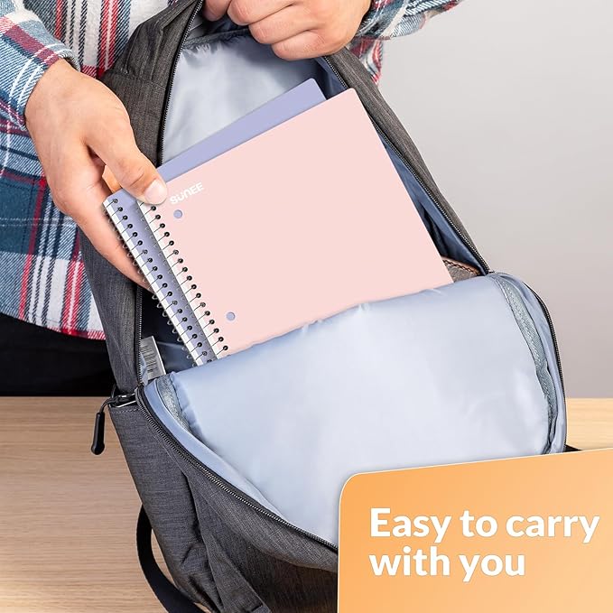 SUNEE Spiral Notebooks, 1-Subject, 20 Pack, College Ruled Paper, 8" x 10-1/2", 70 Sheets per Notebook,3-Hole Punched Paper, Pink,Purple, Blue, Green, Yellow Spiral Lined Notebooks for School,Work