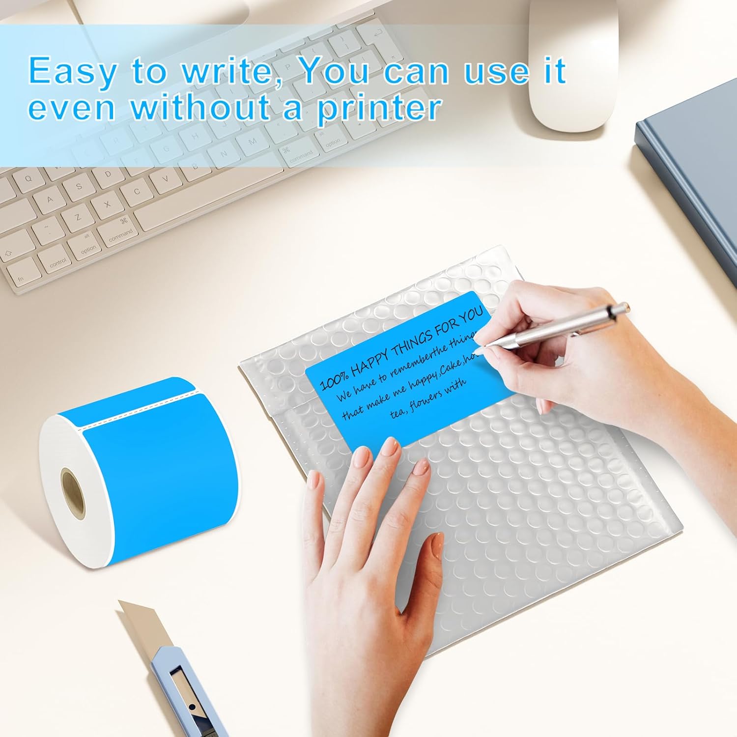 3 X 5 Inch Printable Rectangle Color Coding Labels, 300 Per Roll Adhesive Color Coding Stickers for Bar-Codes, Address, Small Business Labeling, Inventory, Fluorescent Blue
