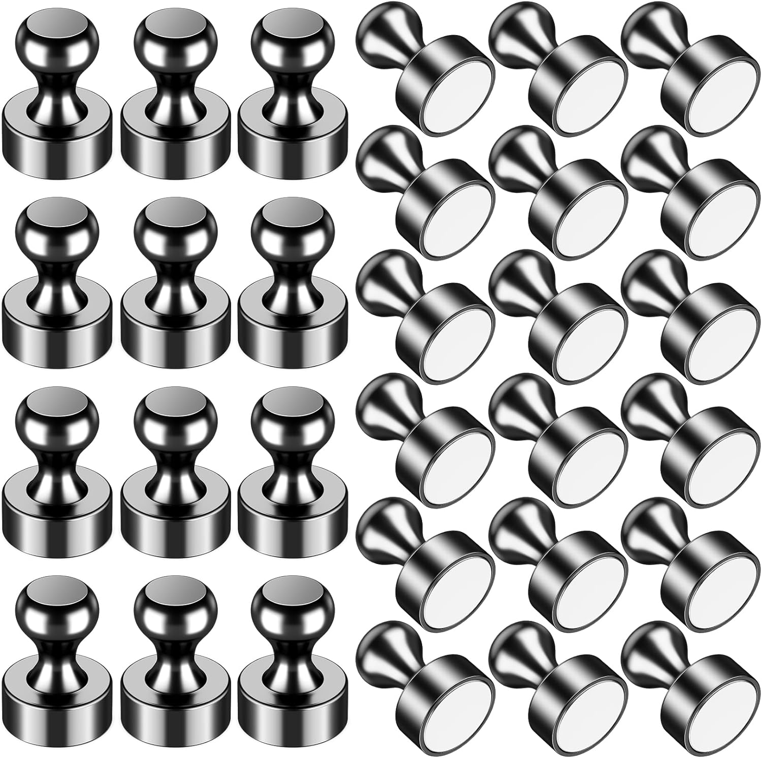 VNDUEEY 30Pcs Strong Fridge Magnets, Black Whiteboard Magnets Refrigerator Magnets, Magnetic Push Pin, Small Metal Magnets for Locker, Map, Kitchen, Office, School, Adults