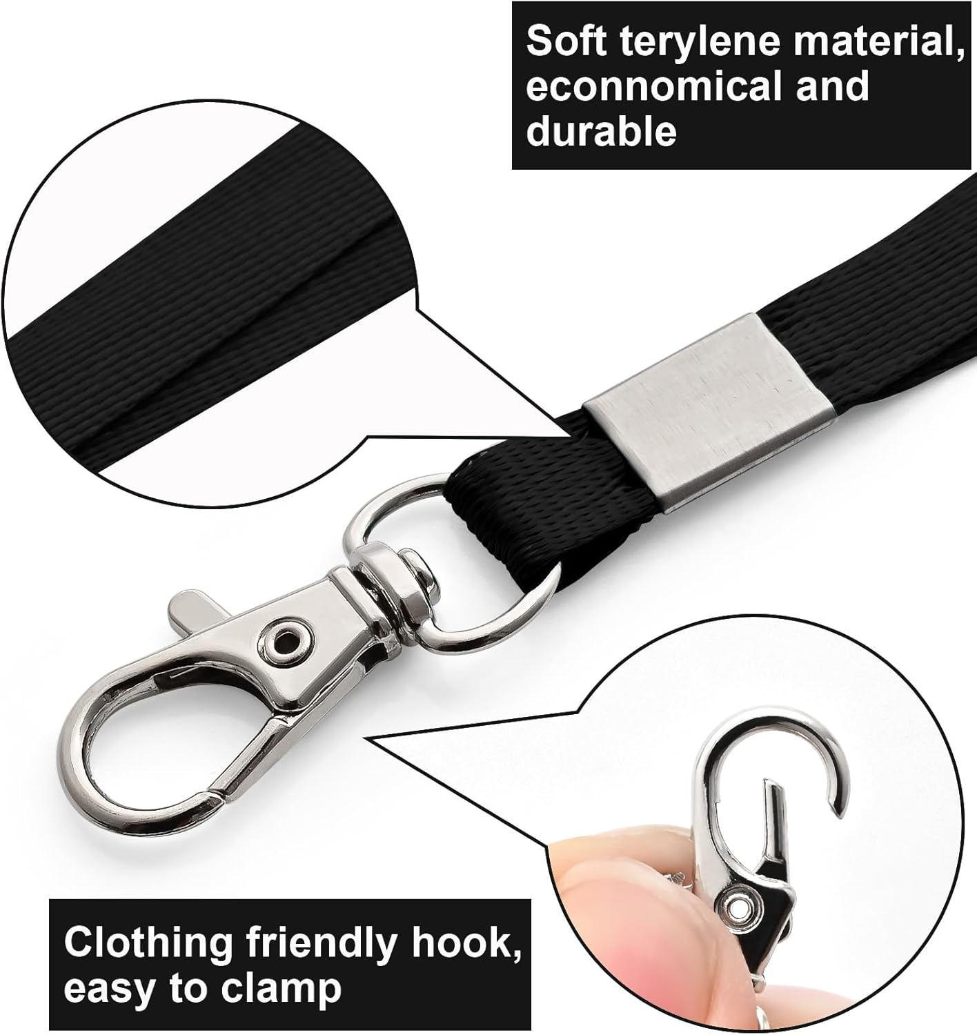 - Reliable material: the lanyard is made of terylene material, which is lightweight but strong; The metal hook is not easy to rust, and is easy to clamp and loosen items with lanyard ends or holes; The horizontal name tag holder is made of PVC material, lightweight, waterproof and can keep dirt and moisture away