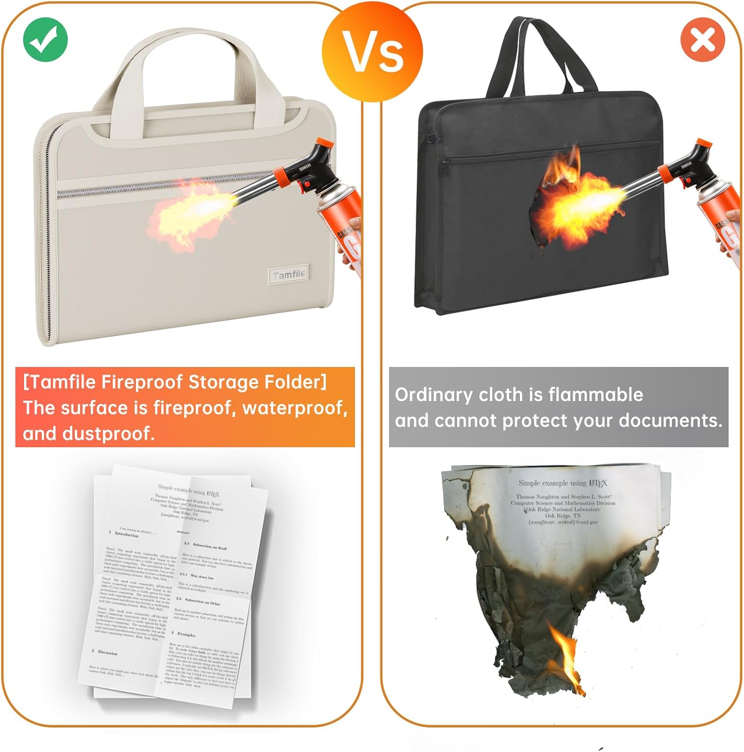 - [Tamfile Fireproof Storage Folder] The surface is fireproof, waterproof, and dustproof. The folder surface is made of fireproof and waterproof upgraded silicone fiberglass fabric, which can withstand temperatures up to 2200°F and has passed SGS testing (UL94 certification). File folders protect valuable items and information. Save and organize your valuable materials, artifacts, important documents, office supplies, and more with our advanced fireproof multipurpose folders.