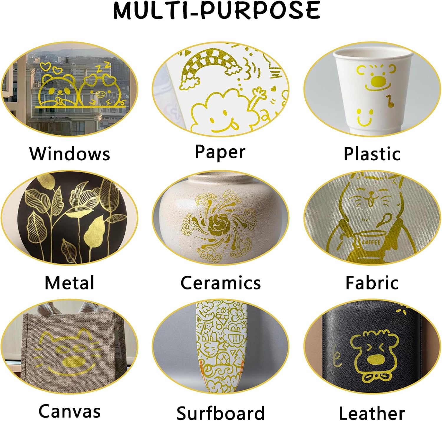 - Multi-Scenario Creativity: From DIY home décor (personalized wine glasses, photo frames) to professional art (calligraphy, scrapbooking) and event styling (wedding invitations, party signage), these pens turn ideas into golden masterpieces!