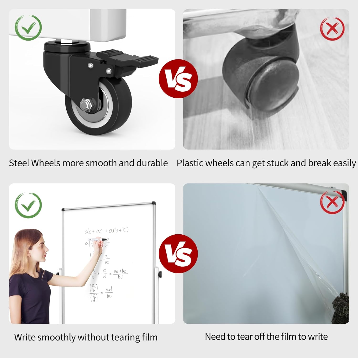 - Dual-sided Writing: Our whiteboard features two sides, each measuring 44x28 inches. With a simple rotation of the stand, you can seamlessly switch between sides, maximizing your writing space.