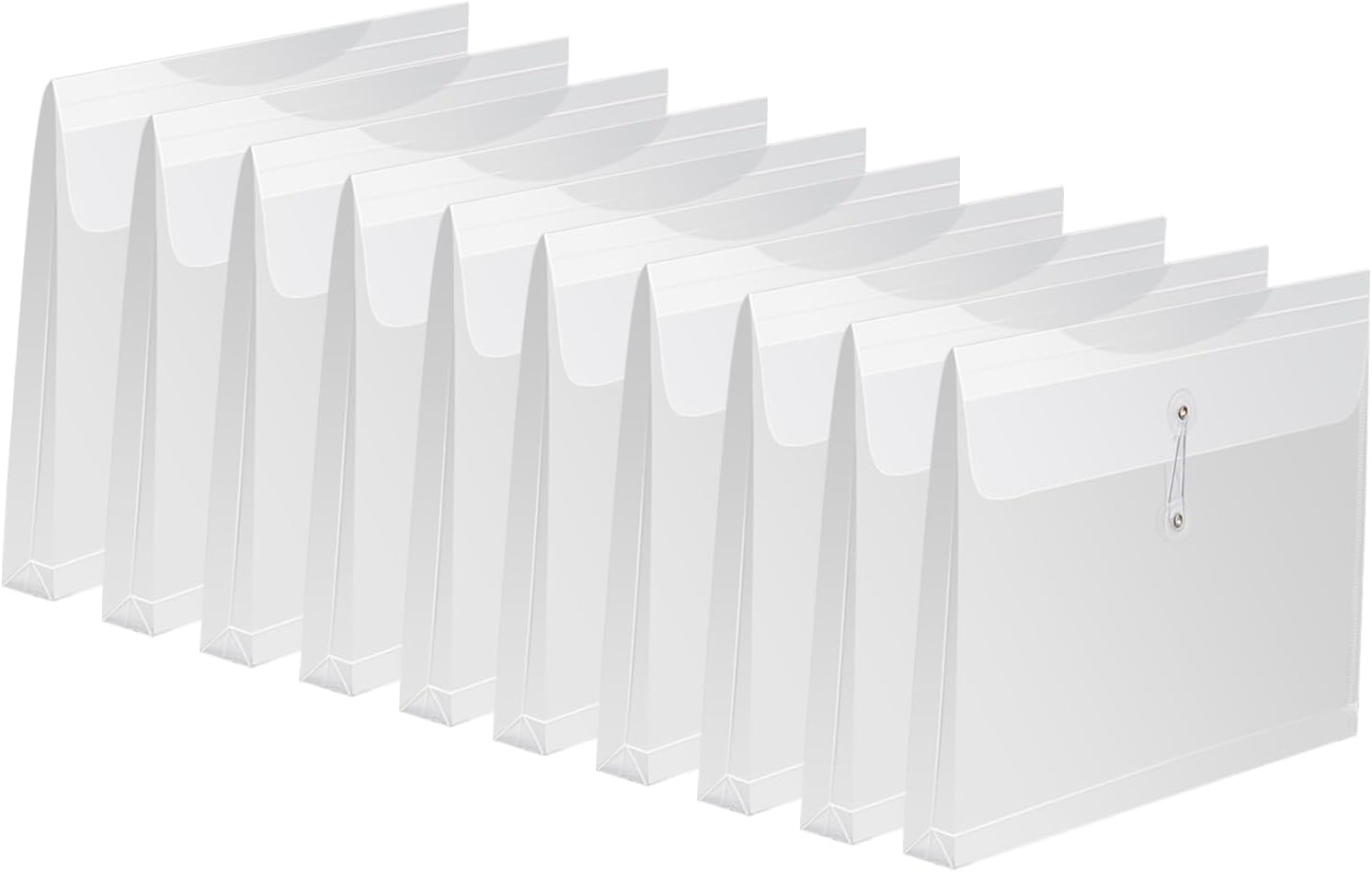 - 【Clear File Folder Size】 You will get 10pcs poly envelopes with string closure, size: 9.6 x 13 x 1.2inch/328 x 245 x 3mm, thickness: real 20c/0.2mm. Perfect for US letter/A4 size paper and other small items storage.