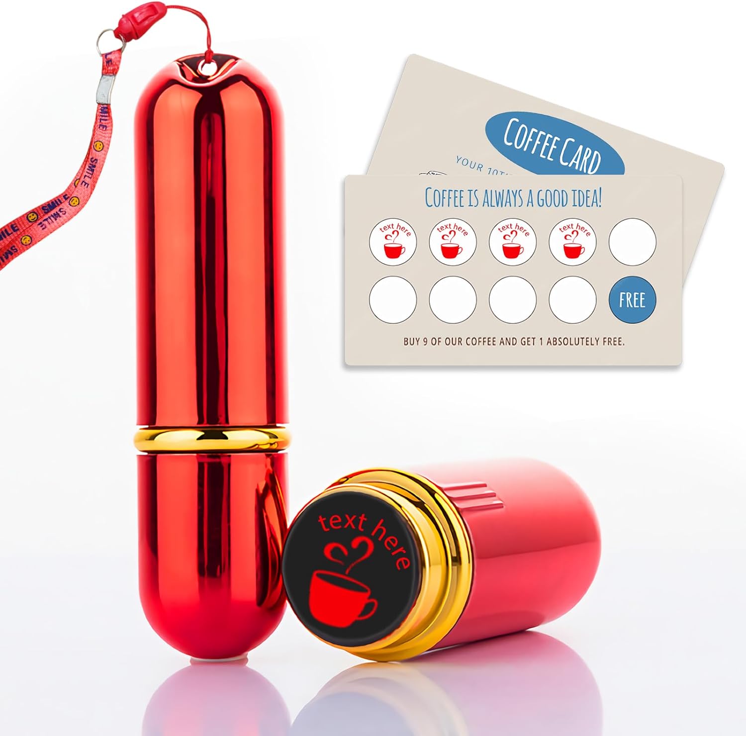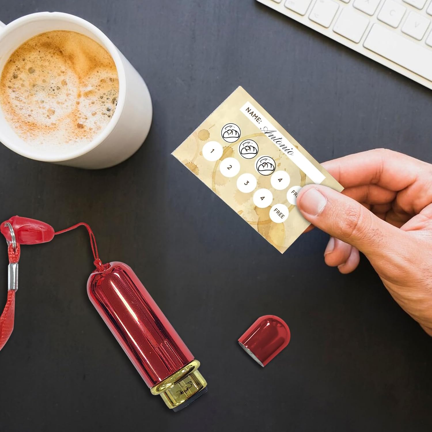 - Choose from a variety of sizes to meet your needs: a small 0.71" x 2.91" (10mm diameter) for a sophisticated customized loyalty card stamp, and a larger 0.9" x 3.31" (15mm diameter) for a bold personalized loyalty card stamp. Choose from four vibrant case colors - red, blue, purple and pink - to match your aesthetic.
