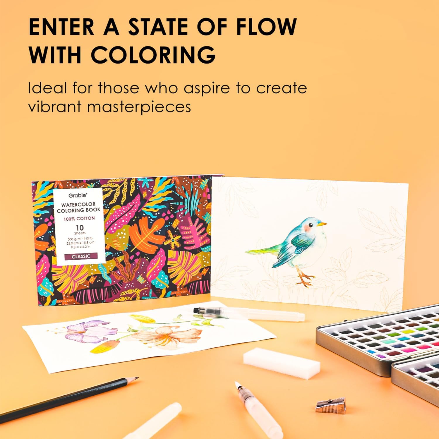Grabie Watercolor Paint Set, Watercolor Paints, 168 Colors, Painting Set with Coloring Book, Water Brushes and Drawing Pencil, Art Supplies, Perfect Starter Kit for Watercolor Painting