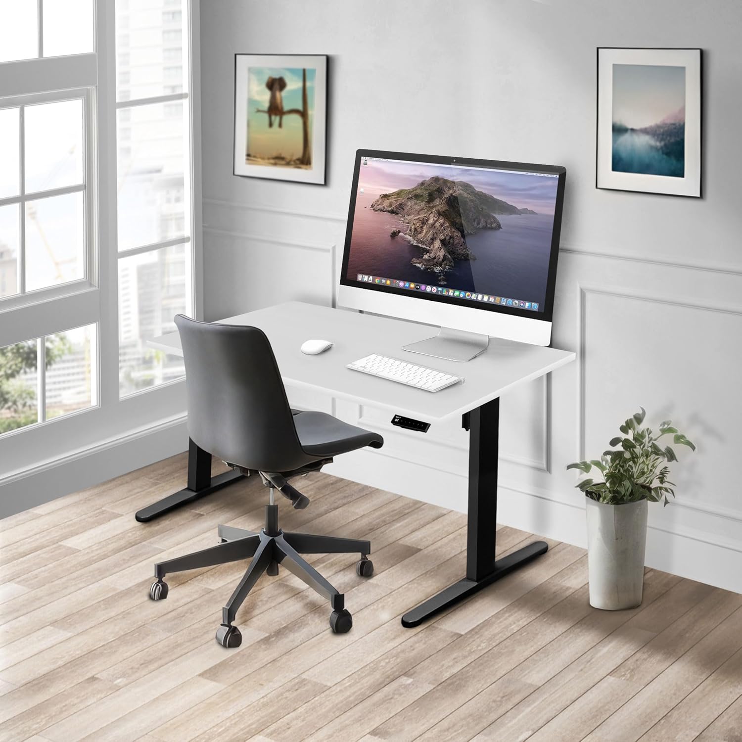 Mount-It! Motorized Sit Stand Adjustable Height Desk Frame with 48" Tabletop - Ergonomic Single Motor Adjustable Standing Height Table, Desktop Rising Up to 47.2" Memory Control, White Black Leg Desk