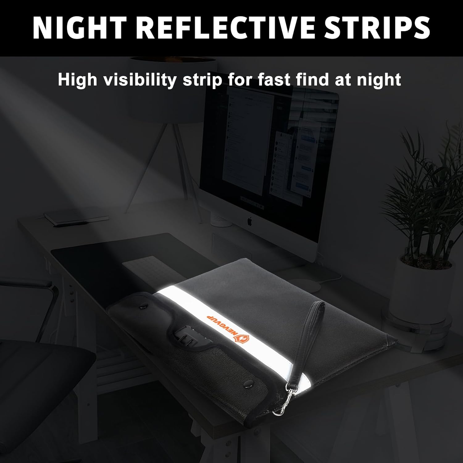 - 360° FIREPROOF DESIGN: This NEVGVUP fireproof document bag mainly adopt a 9-layer function material structure of fire protection and heat insulated; The fireproof money bag for cash is sewn with flame-retardant thread and fireproof hemming, to prevent fire from damaging the fireproof bag from the edge, closure by velcro flap, plus two fireproof metal snaps, so that its zipper completely prevent fire, which make the fire proof money bag for cash 360° fire resistant