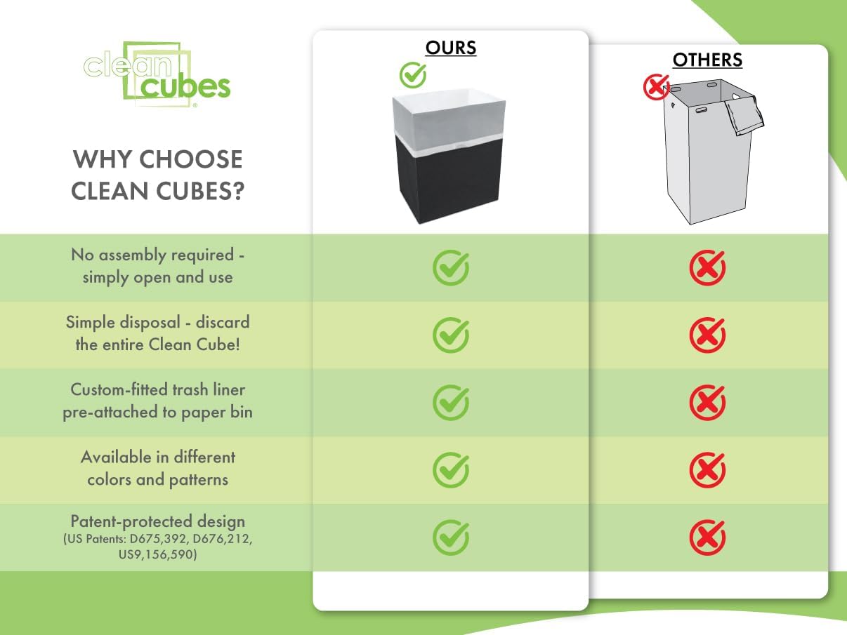 - ✅【EFFORTLESS CLEANUP & DISPOSAL】Simply unfold, use, and toss — keep your event clean and mess-free without extra effort. Clean Cubes are disposable recycling bins and trash cans with a patent-protected design and custom-fitted trash liner in each bin.