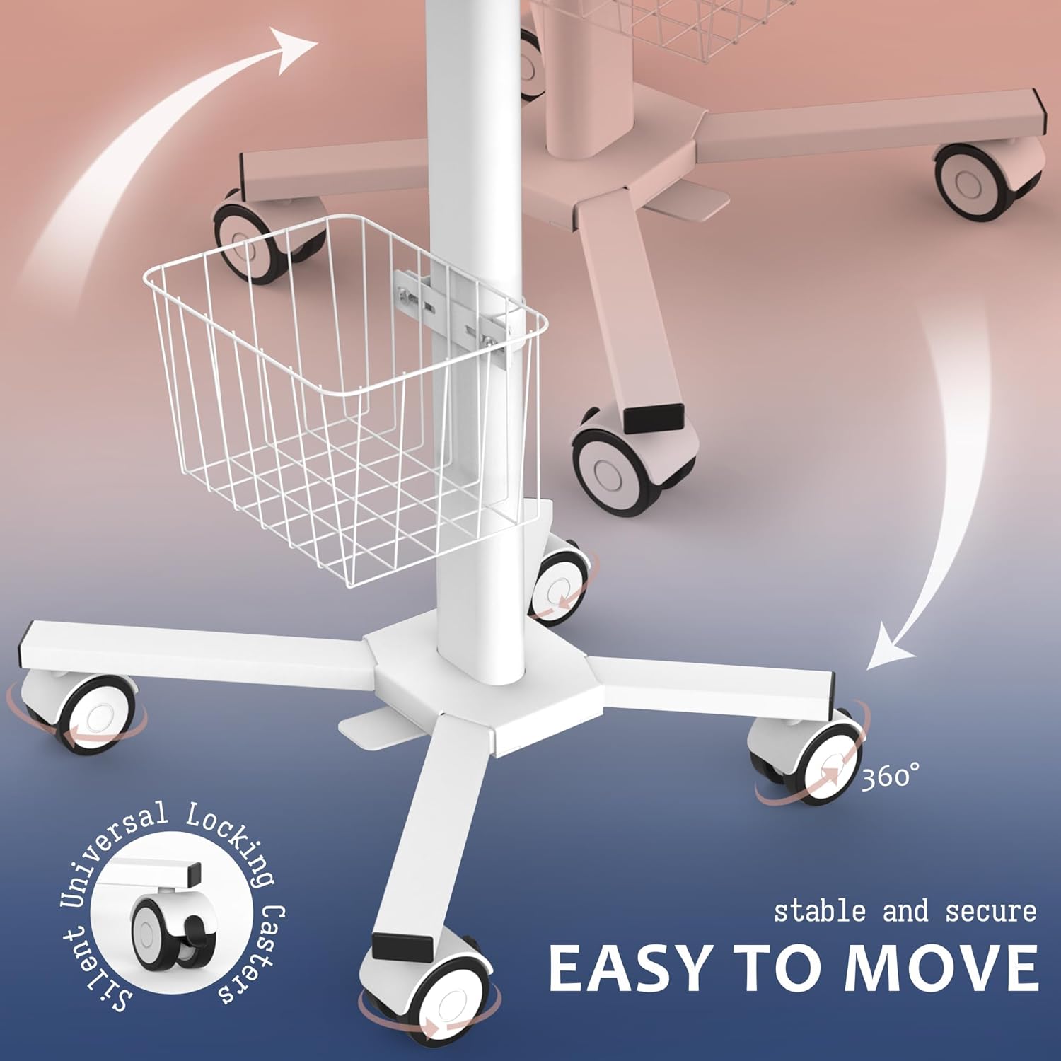Adjustable Height Portable Laptop Desk with Wheels,White Computer Cart on Wheels,Standing Mobile Desk Workstation, Utility Medical Cart
