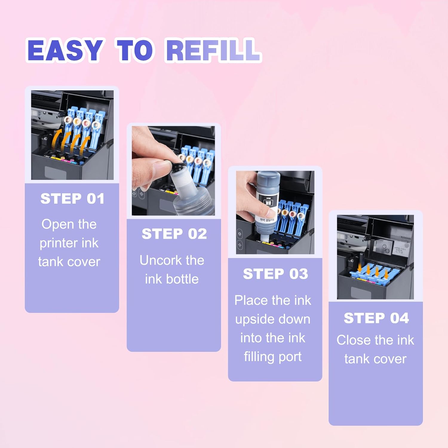- 【Easy to Refill】JoyPrinting 502 ink refill bottles have auto-stop inject heads to prevent mixed-up color injections. The convenient ink injection design allows for easy ink injection in 10 seconds