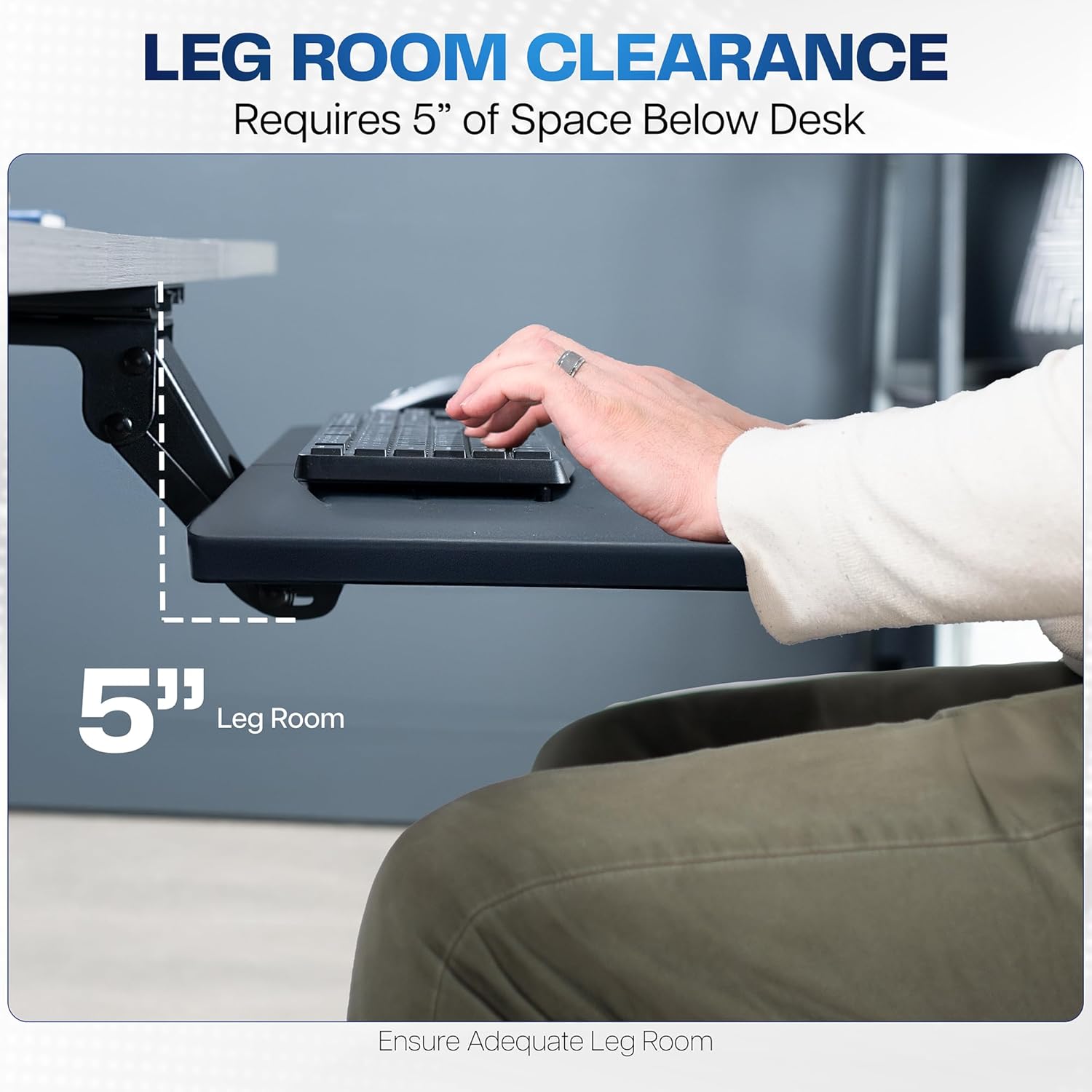 - Deluxe Universal 34" x 10" Tray: Fits most keyboards and mice. The keyboard slides forward and back on a 14.25" long and 6" wide track. Minimum recommended desktop thickness is 5/8"