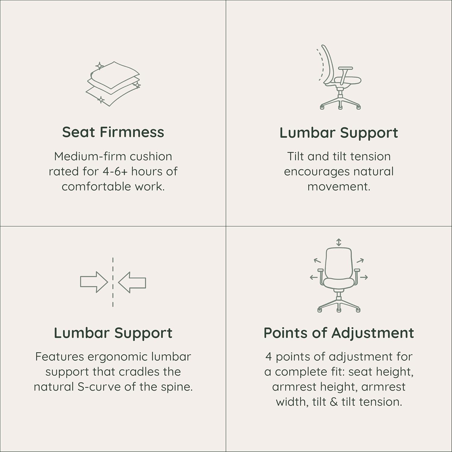 - ADJUSTABLE SEAT: The Branch Daily Chair features a customizable seat height, allowing you to find the perfect position for your size and posture. Say goodbye to uncomfortable computer chairs and hello to a healthier work experience.