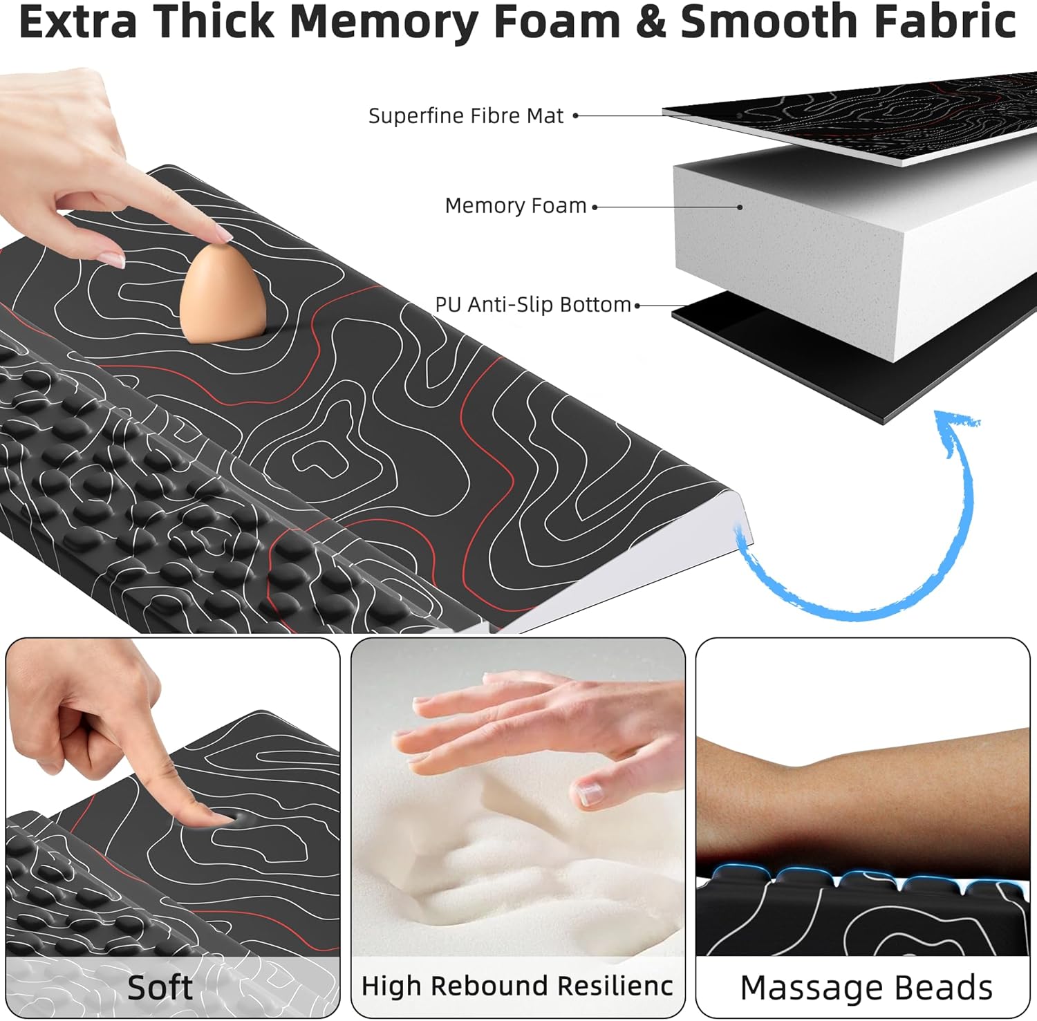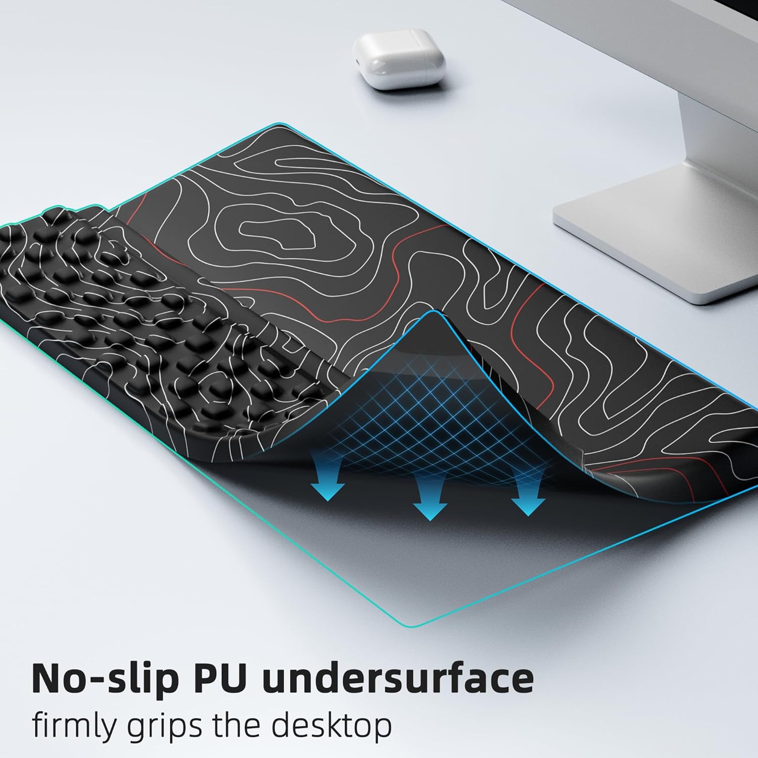 - Lycra Fabric Covering & No-slip PU undersurface: No-slip PU undersurface firmly grips the desktop. And Skin-friendly surface material enhances the comfort of use.