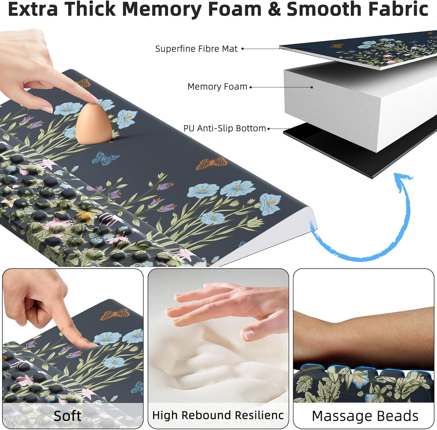 - Extra Thick Memory Foam: Provide a soft and comfortable experience while ensuring quick rebound and durability without collapsing.