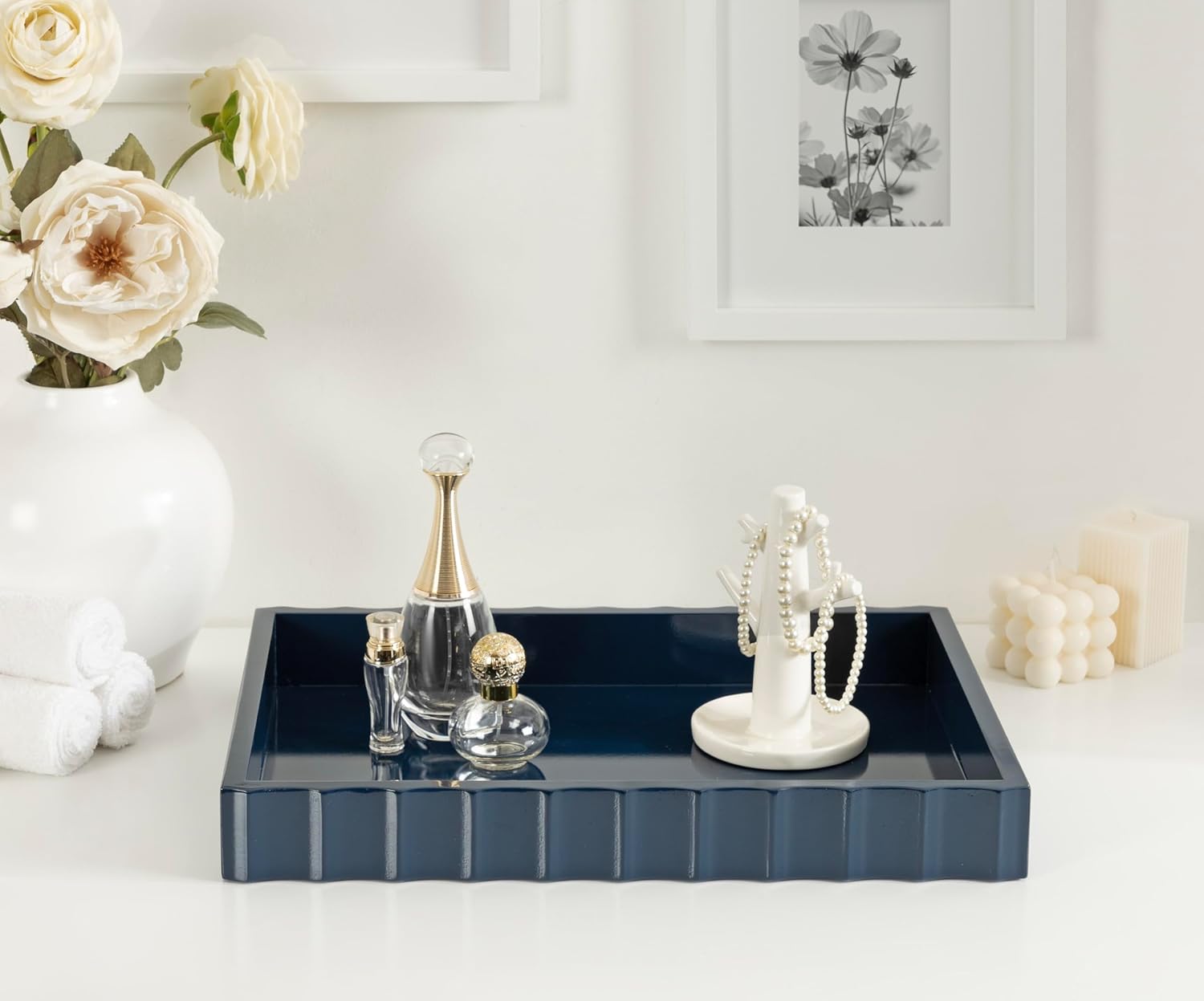 - Contained Tray Surface: With the tray's tall walls, you can place delicate items like a candle or plant within the tray without worry of it toppling and breaking