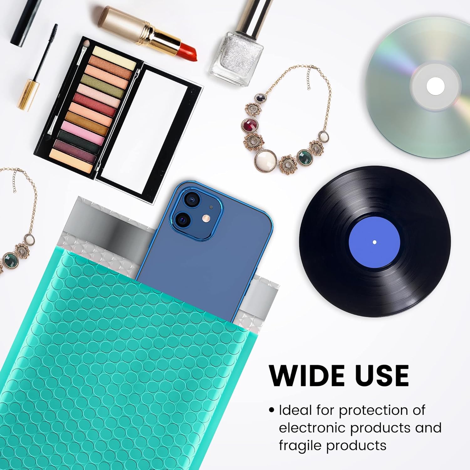 - Perfect Size Teal Bubble Mailer: The poly bubble mailers outer size is 6x10 inch, while the inner size is 6x9 inch. It is very suitable to transport for jewelry, makeup, cards, phone case, Lips, photos, handcraft and more.