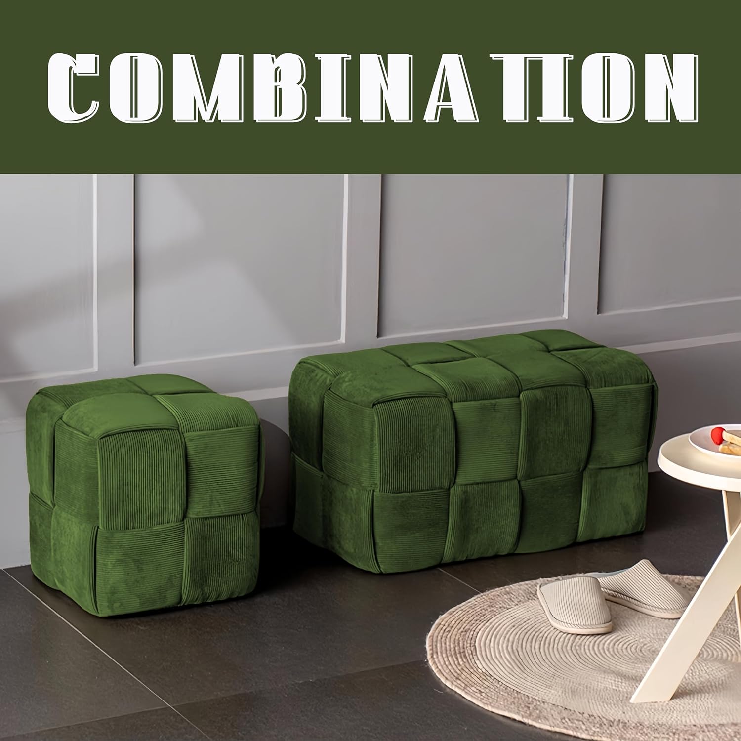 Ottoman Foot Rest Soft and Comfortable Ottoman Square Corduroy Woven Design Sofa Stool (Green-L)