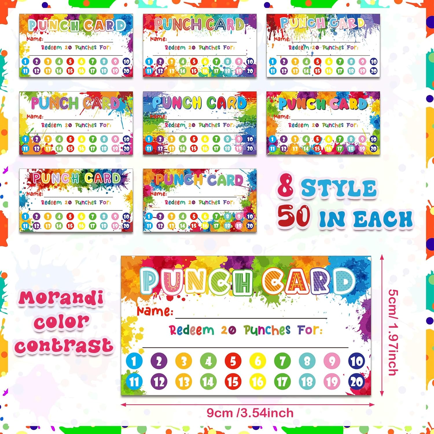 - Large Quantity: you will receive 400 pieces of punch cards for classroom in 8 different styles, each for 50 pieces, each card is approx. 3.5 x 2 inch; Enough quantity and bright colors are suitable for many occasions
