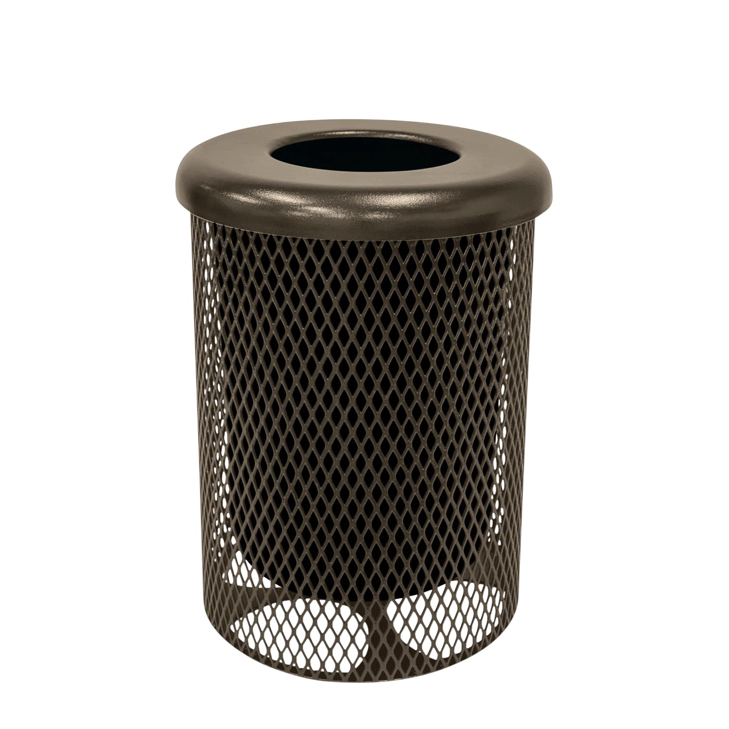 RFT-TXTBRW Heavy Duty Round Trash Receptacle with Flat Top, Liner Included, 32 Gallon, Textured Brown, Made in America