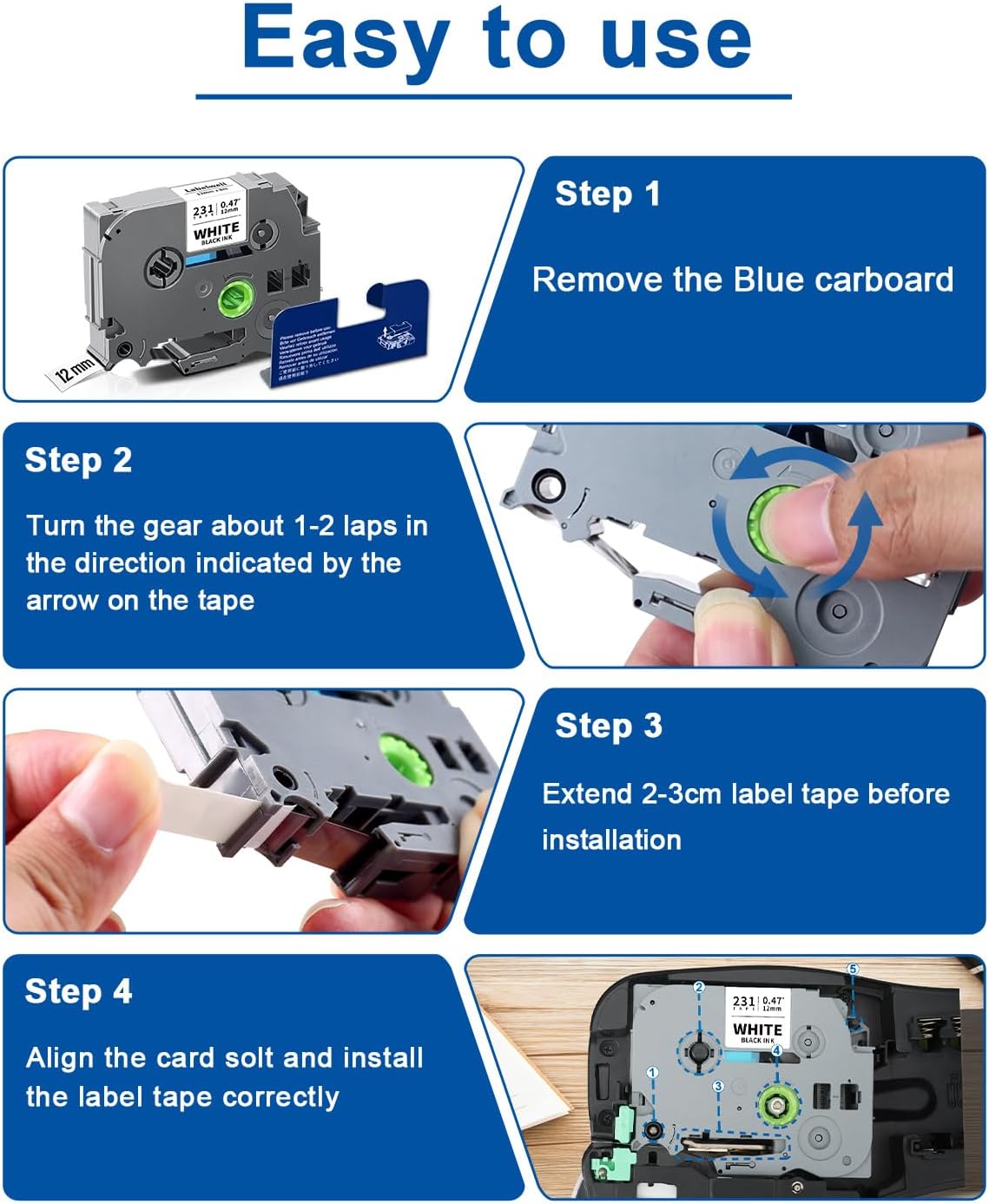 - Easy to use: These 12mm 0.47 Inch Laminated tapes comes with split backing design, the backing tape is split lengthwise in the middle for easy peeling, and all of Labelwell TZe TZ Tapes with the feature of water resistant, temperature resistant, fade resistant, oil resistant, abrasion resistant, chemical resistant, and no sticky residue