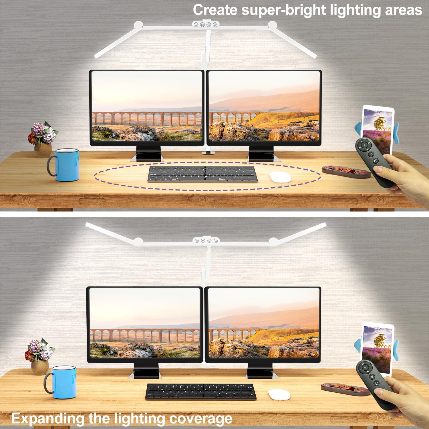 - 【7 Rotatable Joints】: Micomlan swing arms led desk light features 7 strongly damped joints with 3 ultra bright light bars design for freely vertical adjustment and horizontal adjustment. You can rotate the bilateral light bars vertically to change the illumination angle. Turn them up to expand the lighting coverage to illuminates your entire desk or turn them down to create a super bright lighting area for sewing crafting. You can also rotate the base to adjust the light direction and position.
