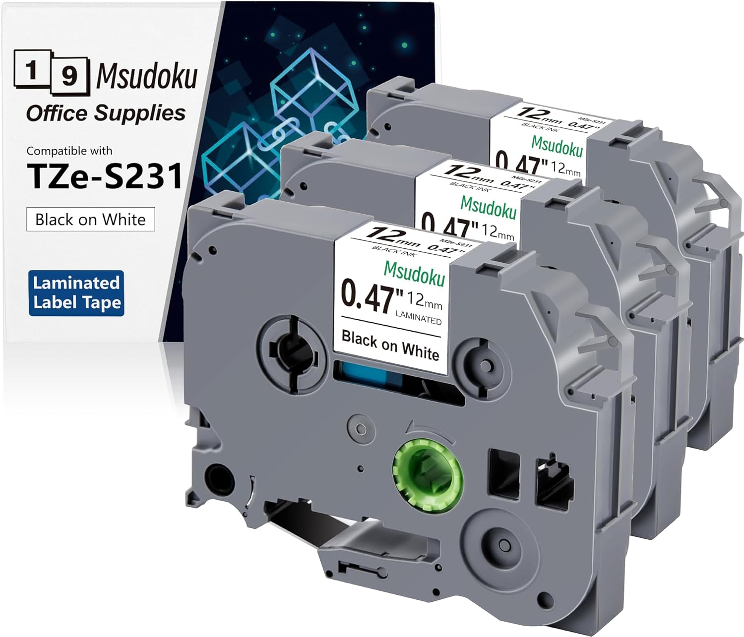 - Msudoku 12mm tape is a laminated, extra strength adhesive labelling tape with at least twice the adhesive strength of compatible with Brother tze 231 standard tape.The extra strength adhesive labels applicable is different of the ordinary label, which is suitable for use in curved surfaces or frosted surfaces, and a long time to certify that it holds the adhesive.Determine the difference between the two types of labels by feel