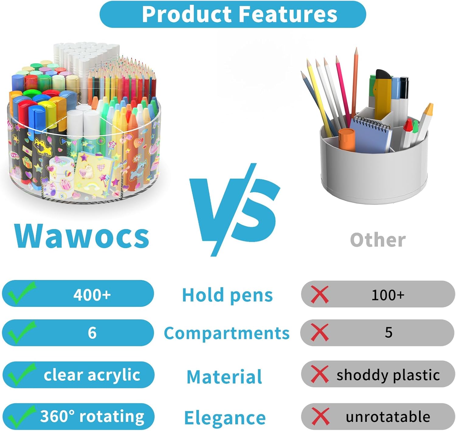 - Wawocs Clear Pen Holder: Rotating Acrylic Teacher Desk Organizer Art Supply Storage Organizer Kids Storage Organizer Desk Pen Holder Pencil Holder for Kids Dorm Desk Organizer Color Pencil Organizer Marker Storage Organizer Student Desk Organizer Storage Organizer for Bedroom Pencil Holder for Classroom Make Up Brush Holder Organizer Brush Holder Makeup Organizer Acrylic Organizers Makeup Make Up Storage Organizer Acrylic Makeup Brush Holder Vanity Storage Organizer Dresser Storage Organizer