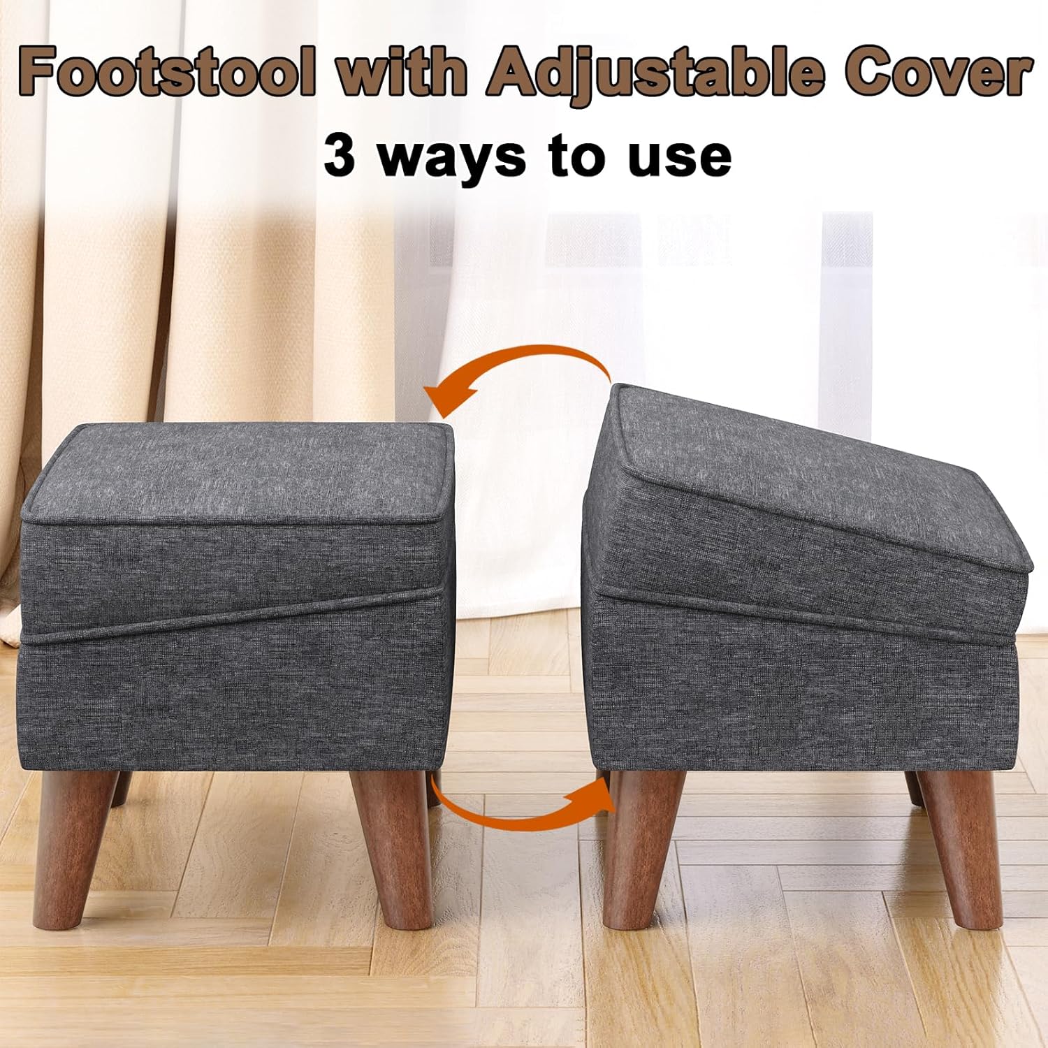 - 【Durable and Sturdy Stool】Our ottoman cushion is made of quality foam covered with skin-friendly linen fabric, the thick and fluffy seat provides a soft and comfortable feeling when you sit on it. The fine grade wood frame and four solid legs make this small stool ottoman a strong sturdiness and long service life which holds up to 250 lbs.